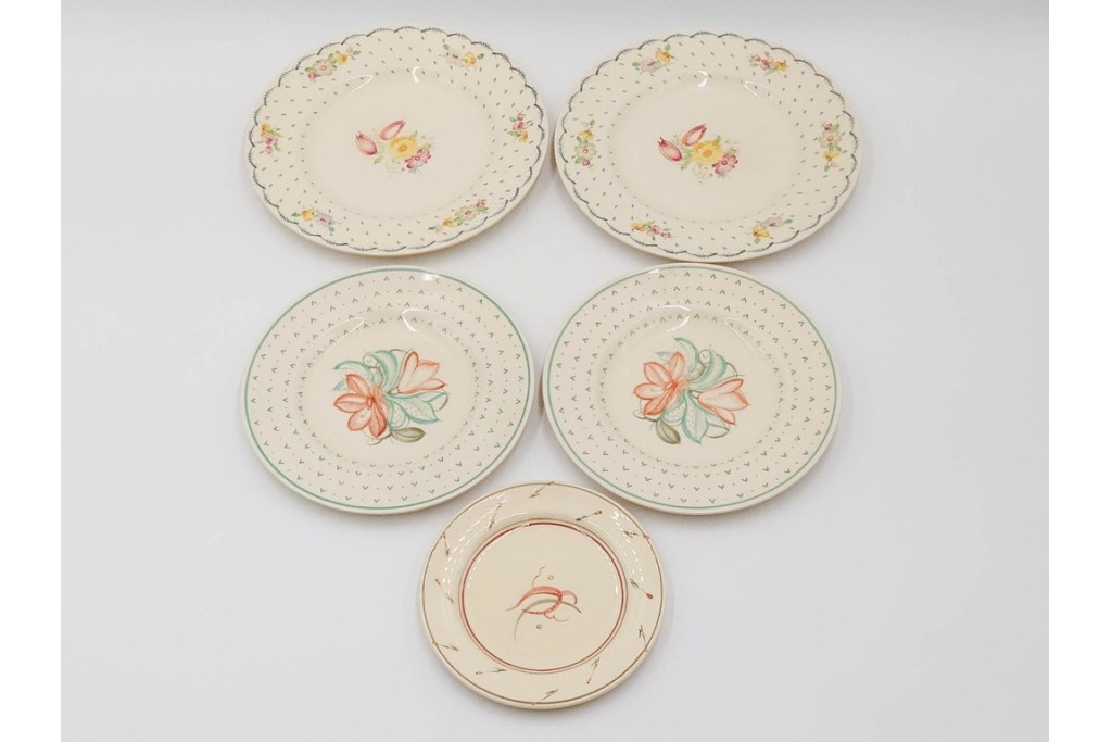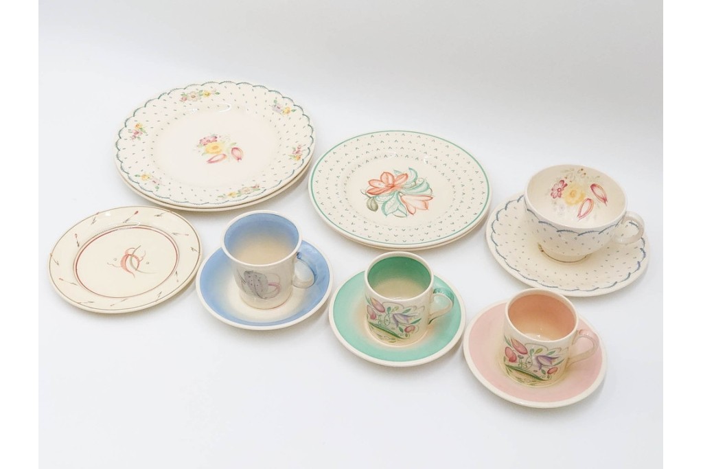 ラフジュ工房> 洋食器・キッチン用品> 皿・プレート > イギリスビンテージ Susie Cooper(スージークーパー) グレイリーフ ドレスデンスプレイ プランタン カクタス アカデミーパターン(チューリップ) テーブルに華やかさと温かみを添えるカップ&ソーサー4客・プレート5枚セット (R-084795)