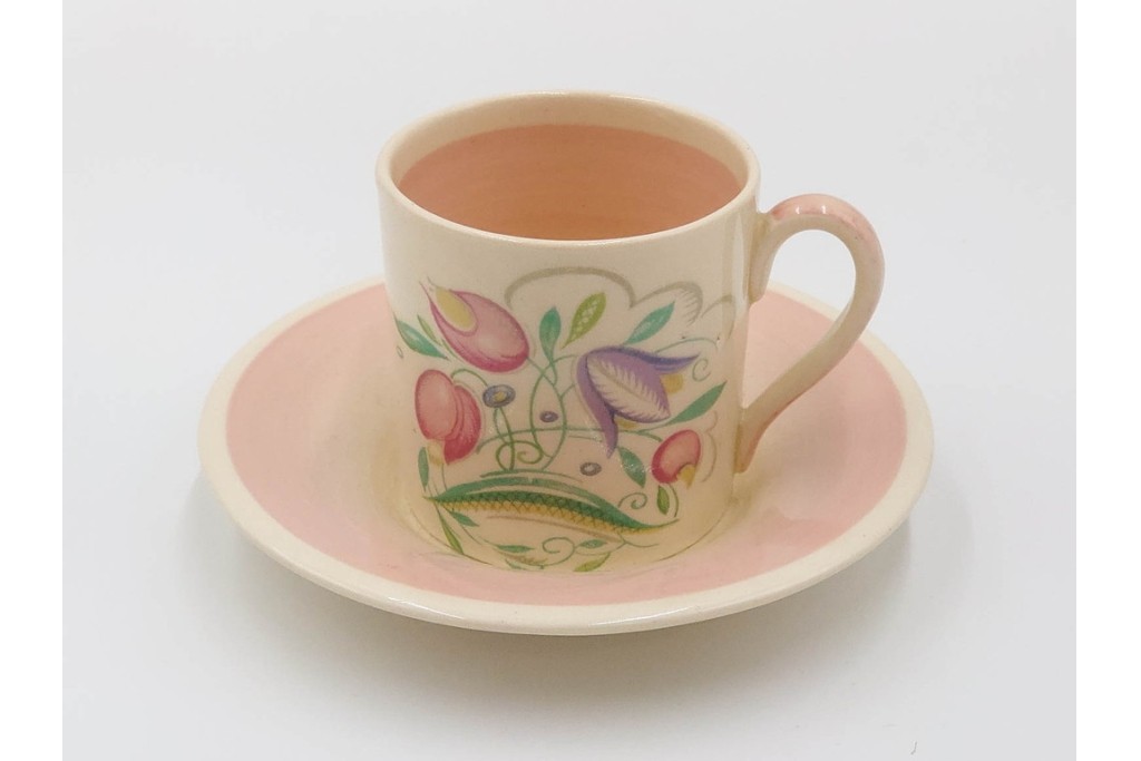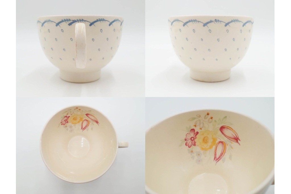 ラフジュ工房> 洋食器・キッチン用品> カップ&ソーサー > イギリスビンテージ Susie Cooper(スージークーパー) グレイリーフ ドレスデンスプレイ プランタン カクタス アカデミーパターン(チューリップ) テーブルに華やかさと温かみを添えるカップ&ソーサー4客・プレート5枚セット (R-084795)