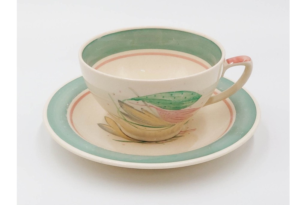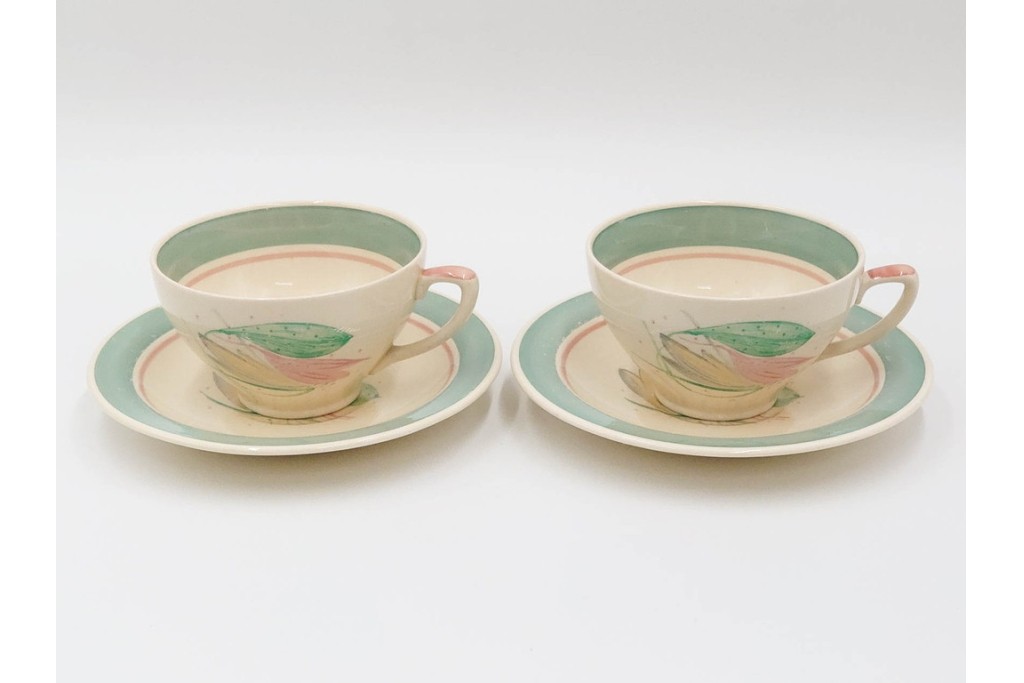 ラフジュ工房> 洋食器・キッチン用品> カップ&ソーサー > イギリスヴィンテージ Susie Cooper(スージークーパー) ロングリーフ 上品で可愛らしいカップ&ソーサー2客・クリーマー・プレート4枚セット (R-084796)