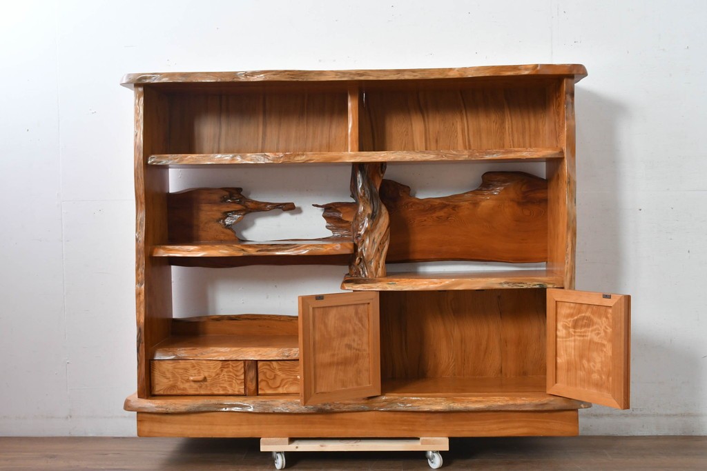 ラフジュ工房> 和箪笥> 茶箪笥・茶棚 > 和製ビンテージ 美品!! 屋久杉 総無垢材 自然の造形美が映える飾り棚 定価約200万円相当 (R-084823)
