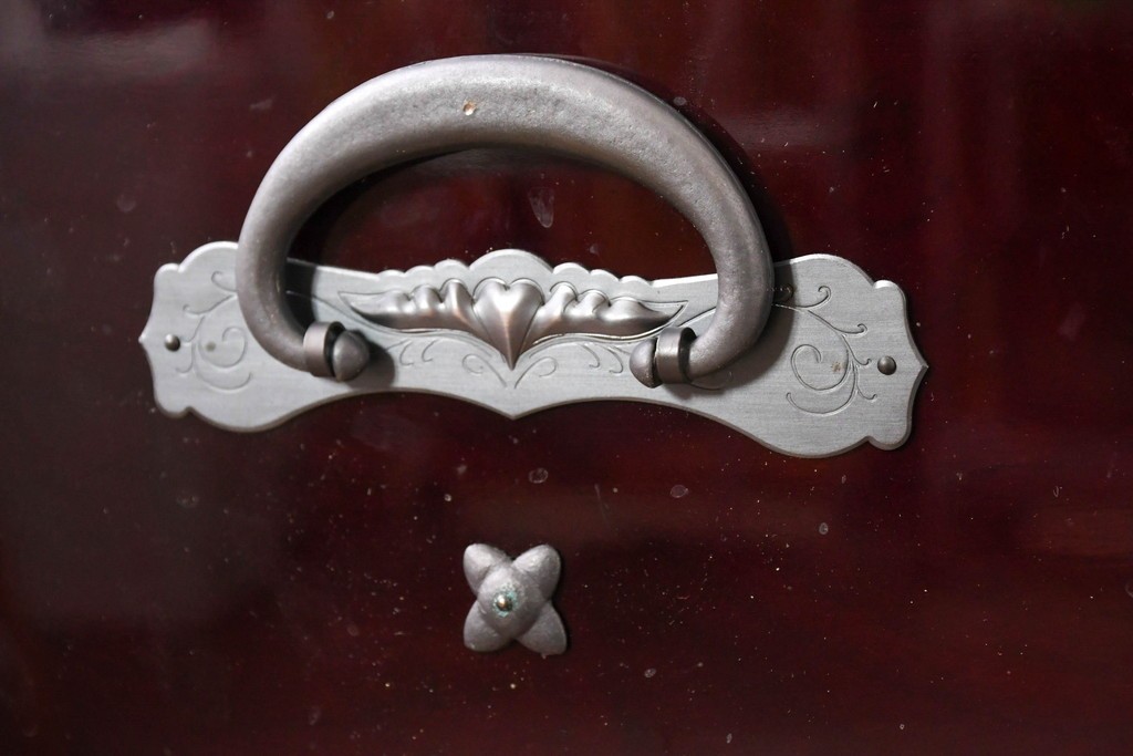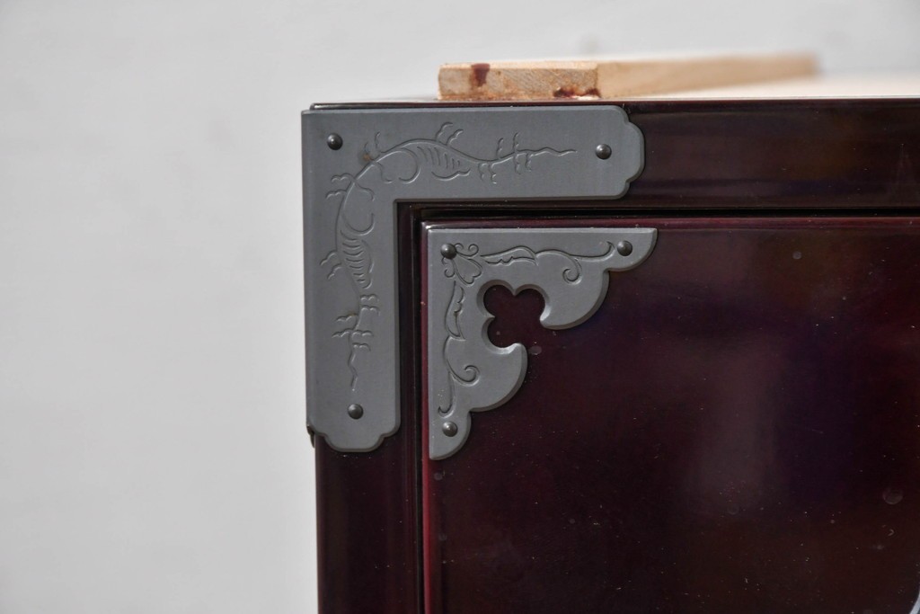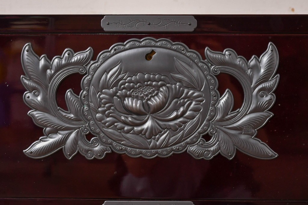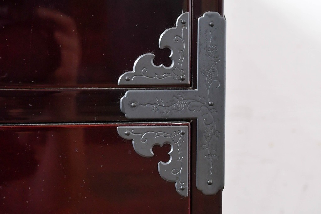 キャビネット・戸棚 > 《天板取り付け加工費込み》中古 美品 欅産業 表面欅(ケヤキ)材 内部桐材 木地呂塗り 漆塗りの光沢が美しい仙台箪笥ローチェスト・テレビ台 (R-084862)