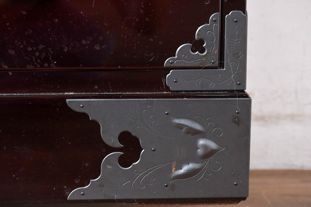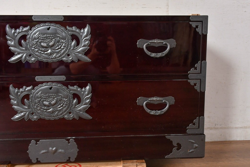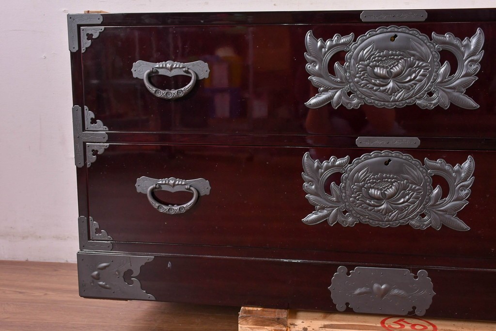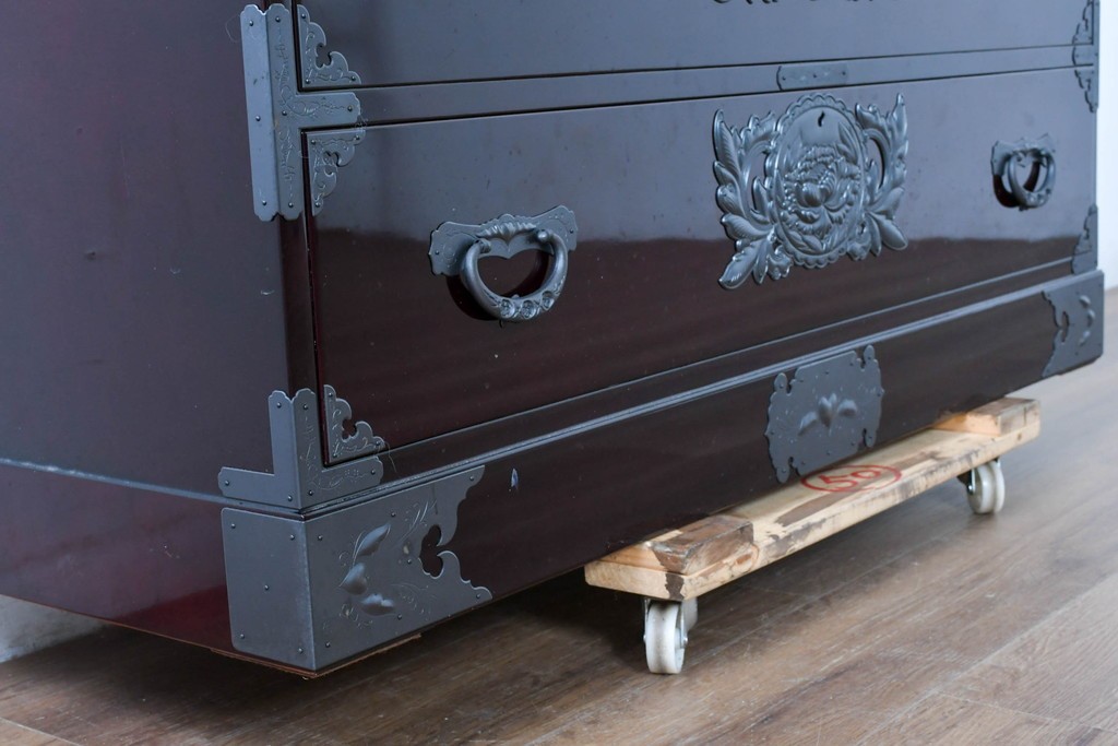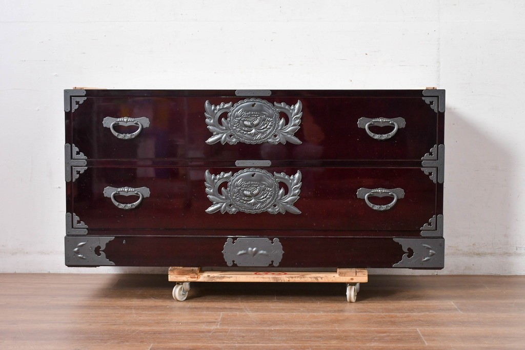チェスト・引き出し > 《天板取り付け加工費込み》中古 美品 欅産業 表面欅(ケヤキ)材 内部桐材 木地呂塗り 漆塗りの光沢が美しい仙台箪笥ローチェスト・テレビ台 (R-084862)