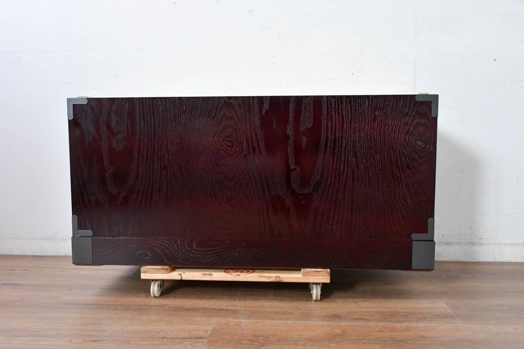 キャビネット・戸棚> テレビ台・ローボード > 《天板取り付け加工費込み》中古 美品 欅産業 表面欅(ケヤキ)材 内部桐材 木地呂塗り 漆塗りの光沢が美しい仙台箪笥ローチェスト・テレビ台 (R-084862)