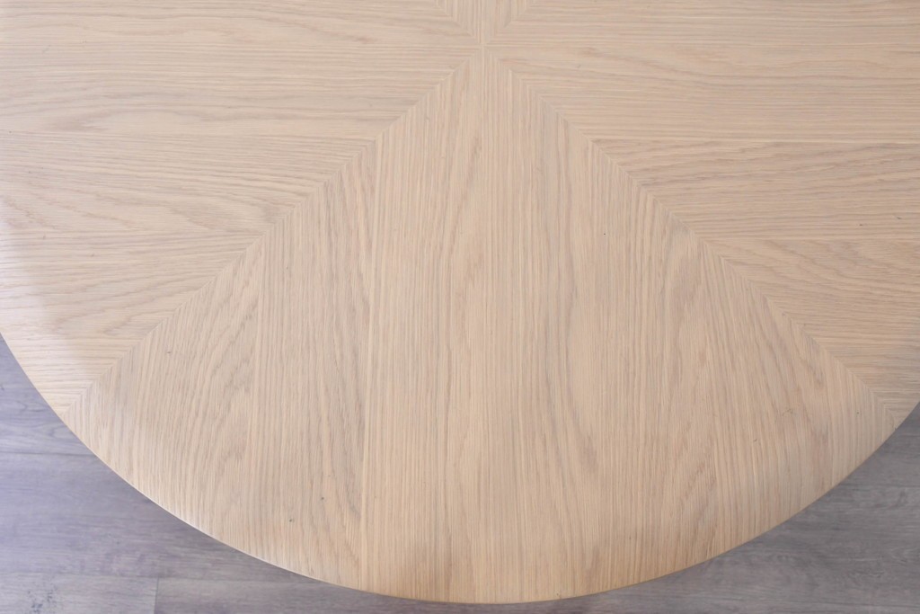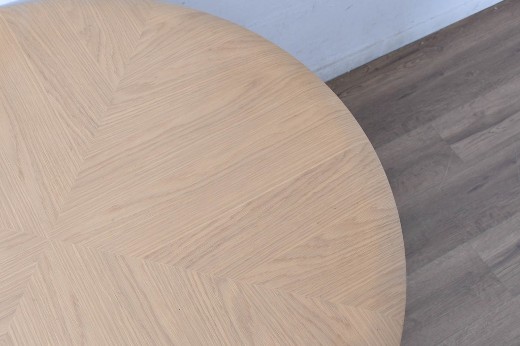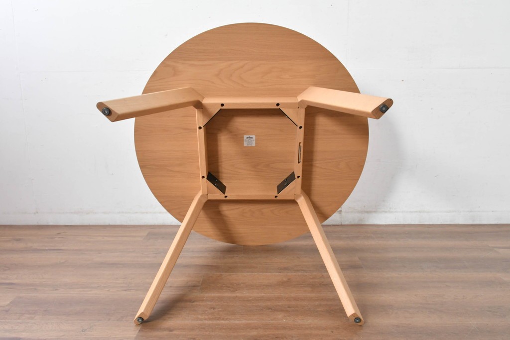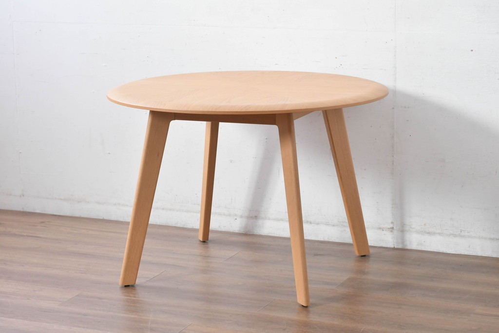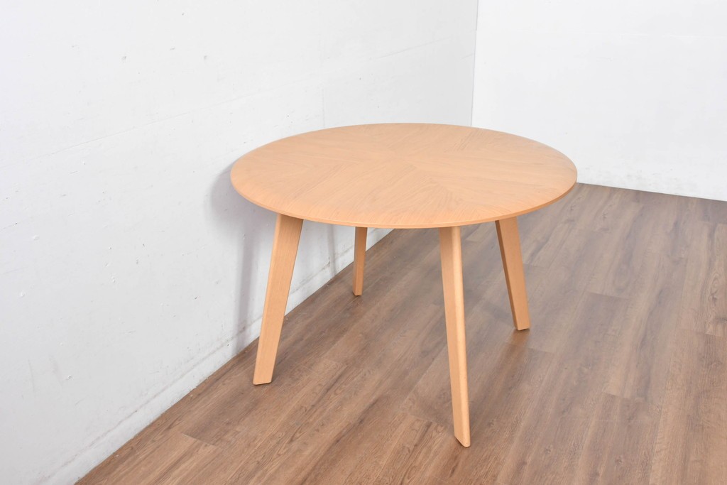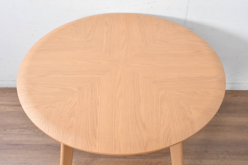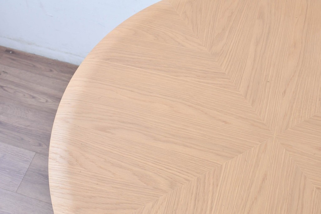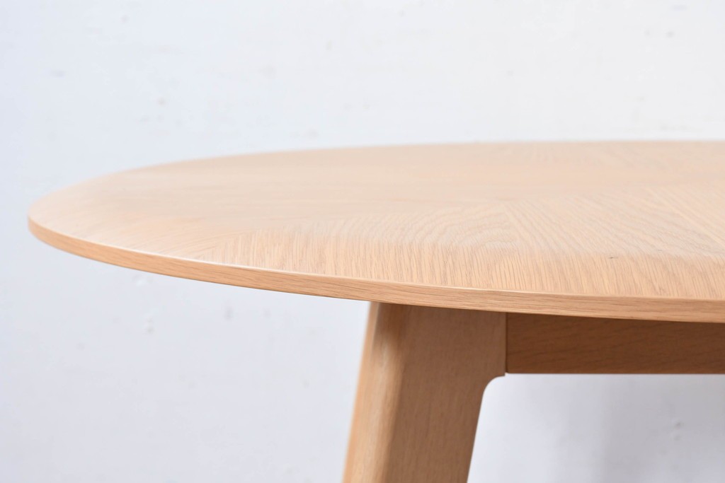 丸い天板は圧迫感が少なく、部屋をやわらかい雰囲気に見せてくれます。角がないので動線が確保しやすく、小さなお子様がいるご家庭でも安心して使えるのがありがたいところ。人数に合わせて使い方を柔軟に変えられるのもラウンドテーブルの強みで、日常使いからティータイムまで幅広く活躍します。