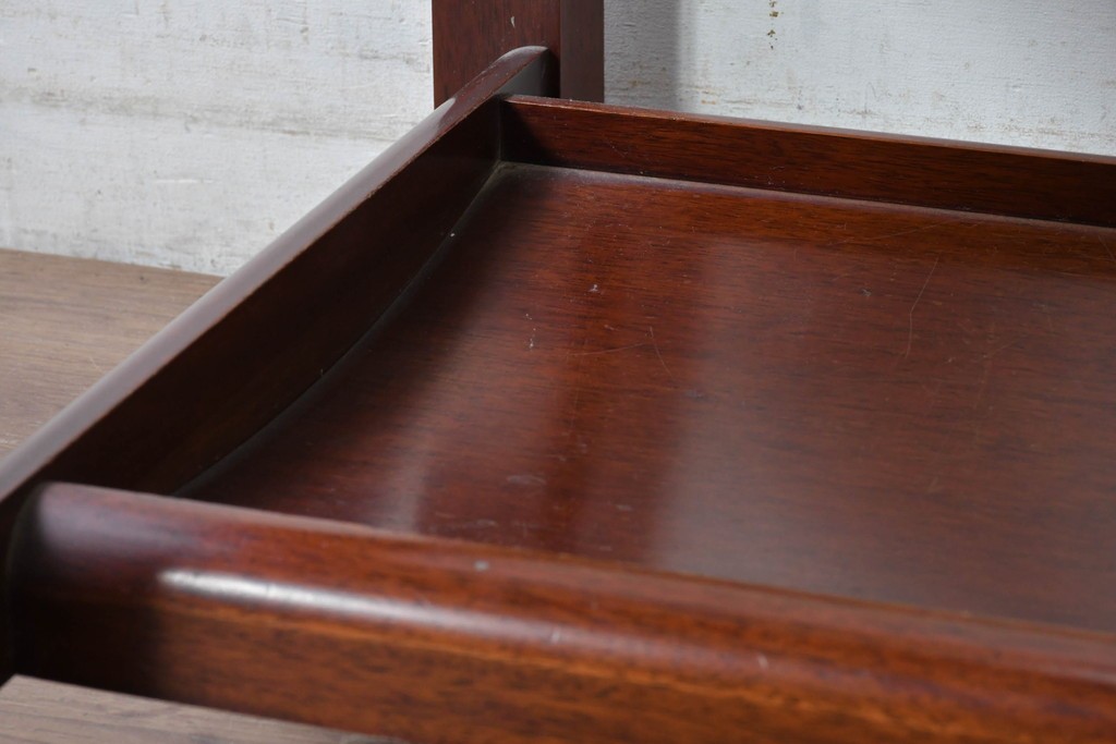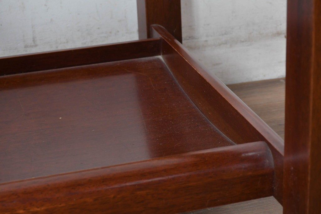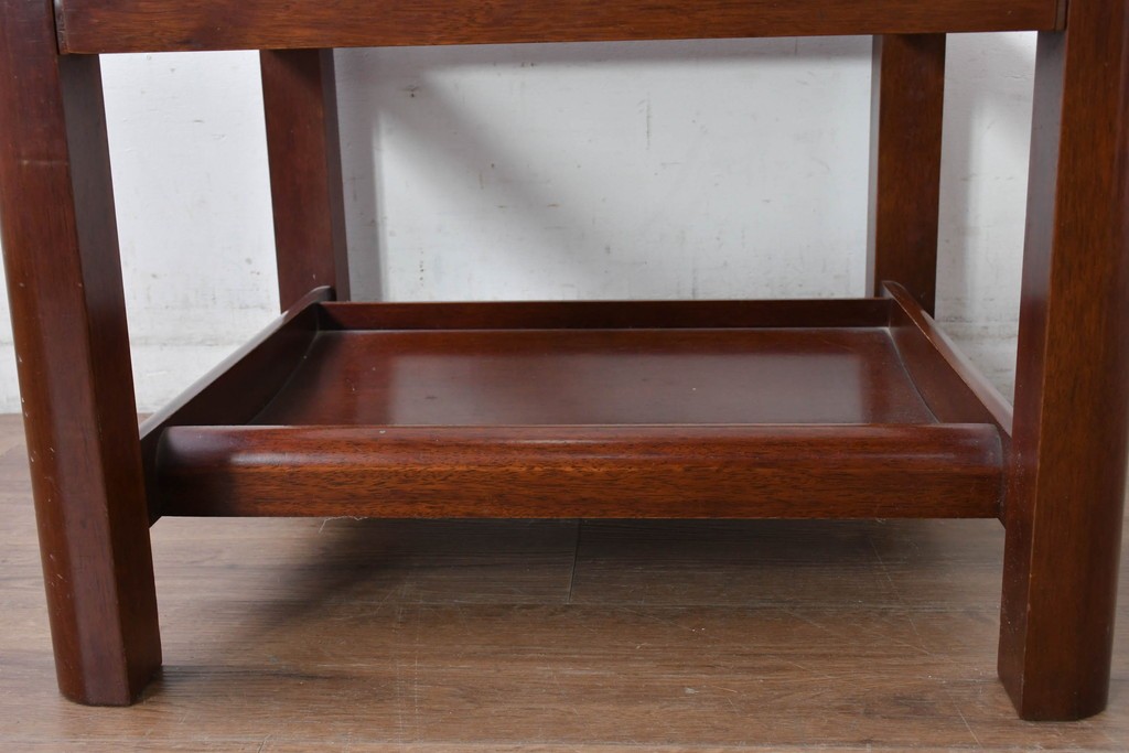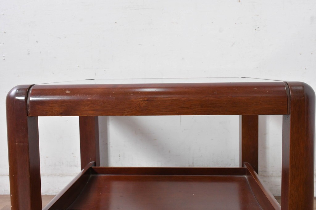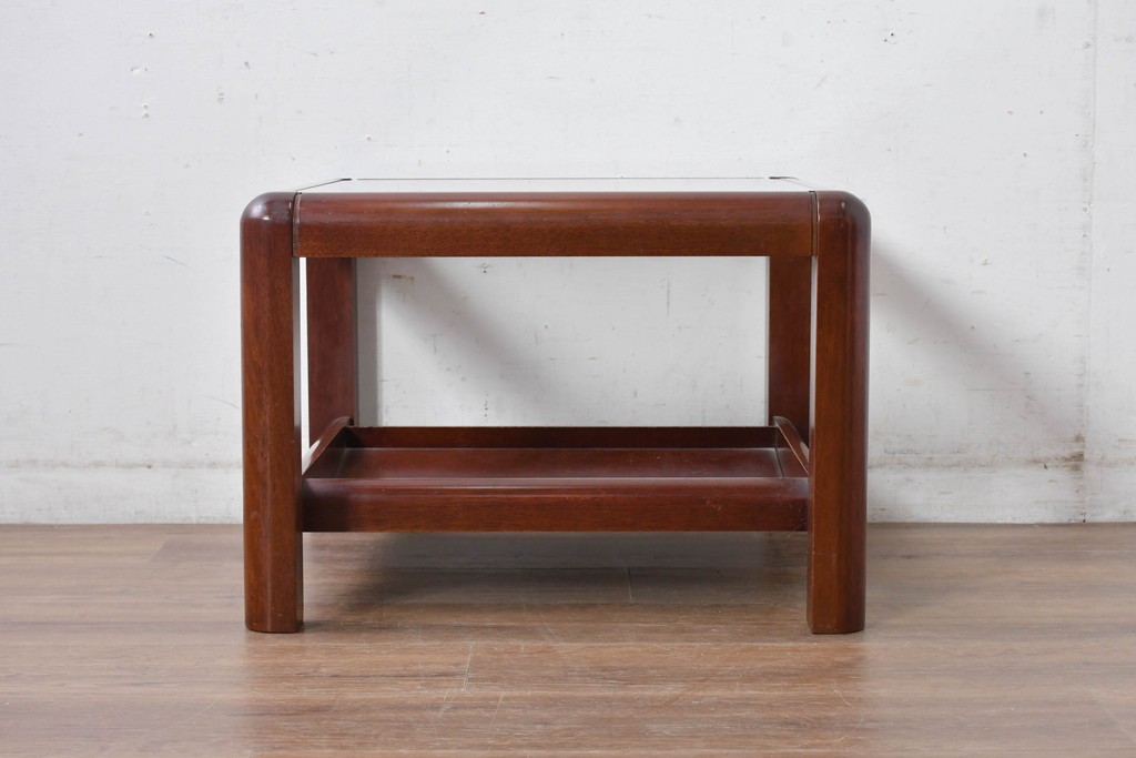 和製ヴィンテージ スクエア型ガラストップの棚付き木製ローテーブル (R-084903)
