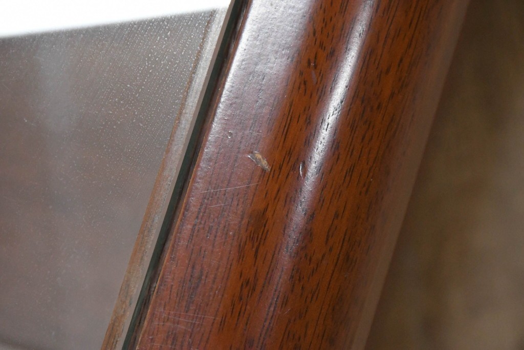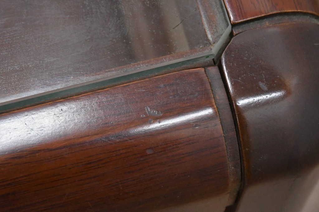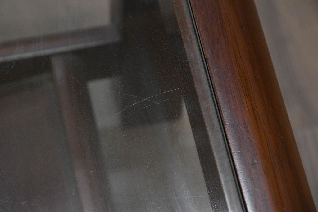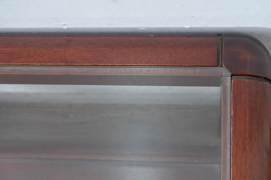 • 和製ヴィンテージ スクエア型ガラストップの棚付き木製ローテーブル (R-084903)