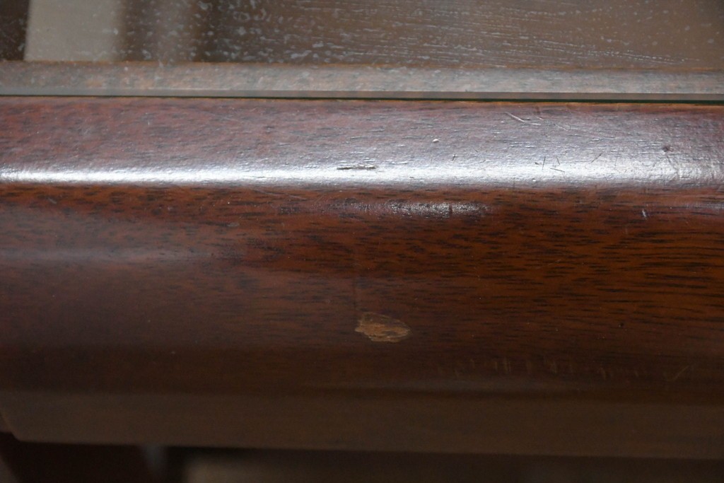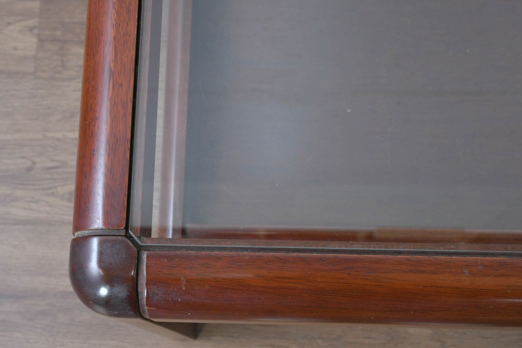 ラフジュ工房> テーブル> センターテーブル・ローテーブル > 和製ヴィンテージ スクエア型ガラストップの棚付き木製ローテーブル (R-084903)