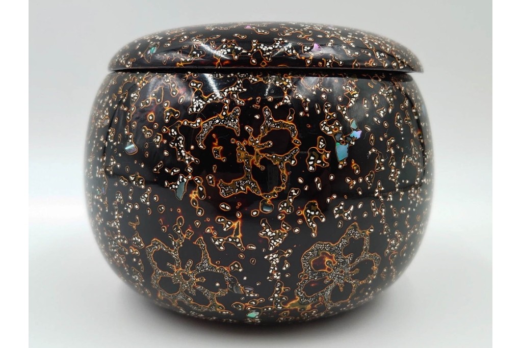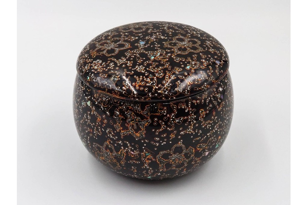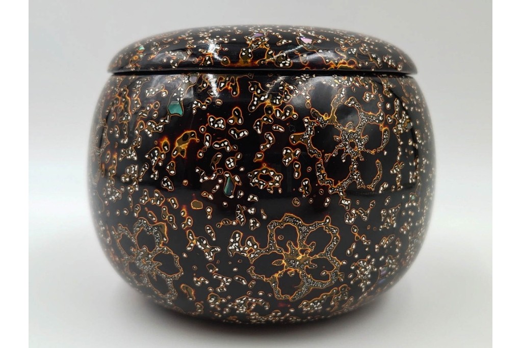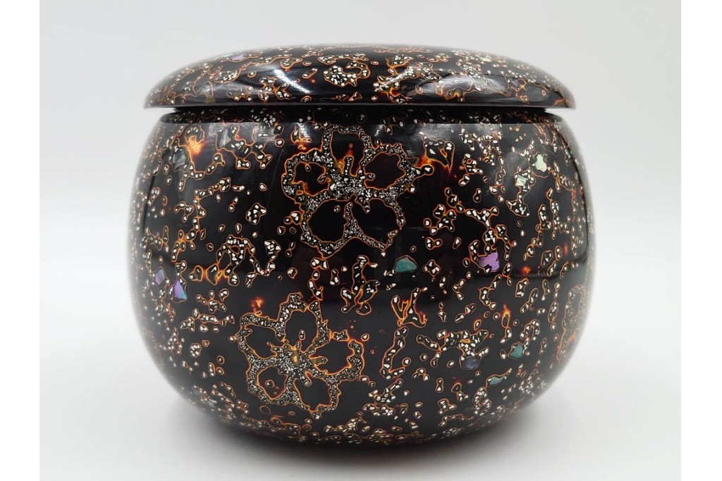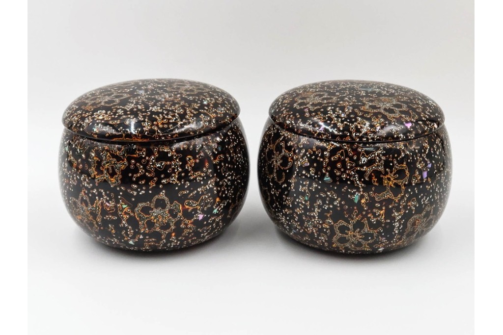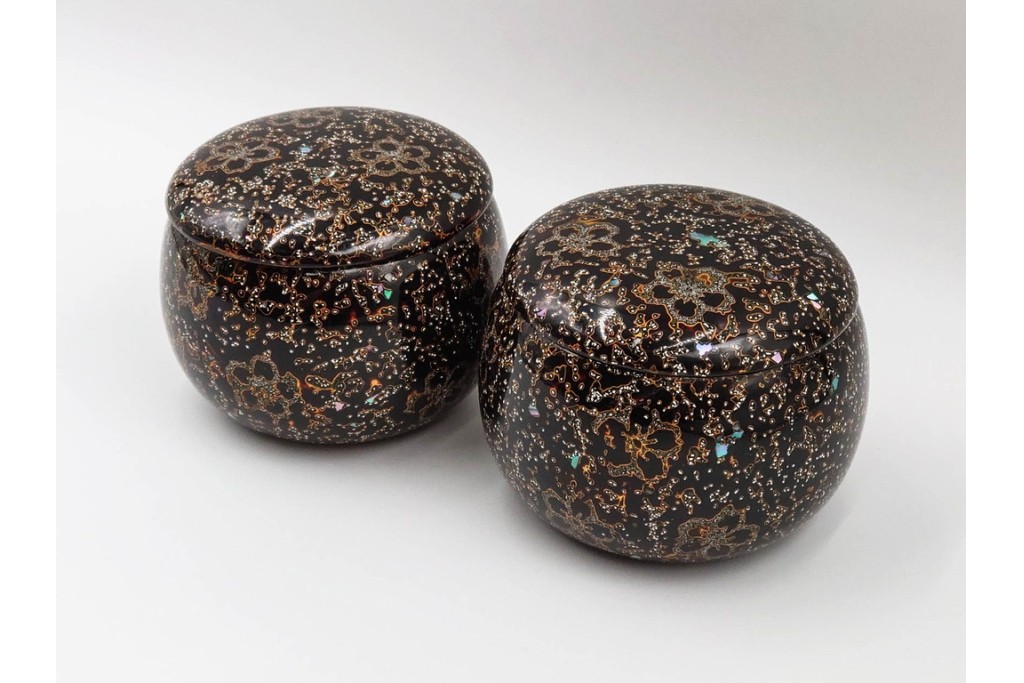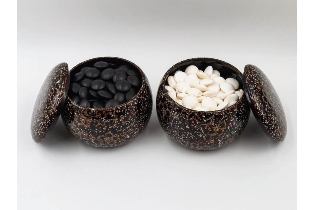 時代物 蛤・那智黒 螺鈿の花文が華やかな碁笥・碁石セット (R-084907)