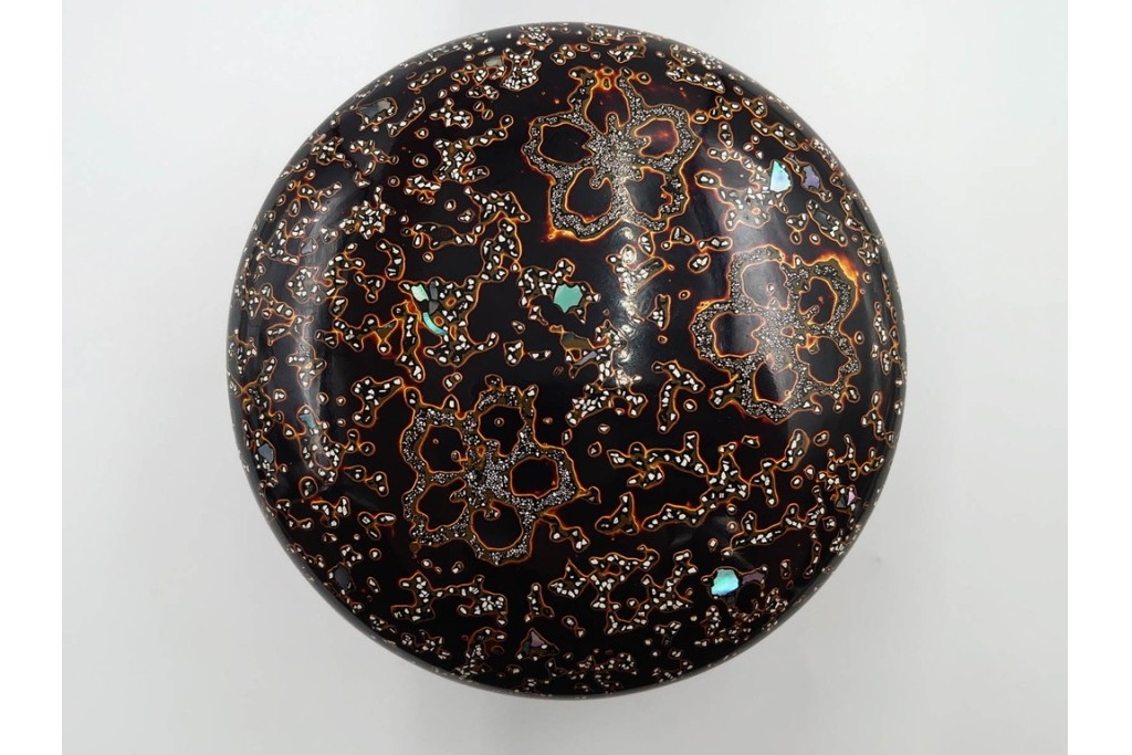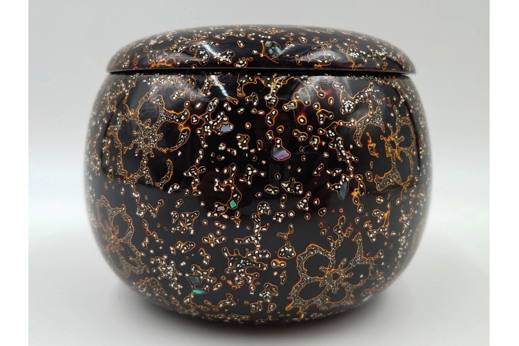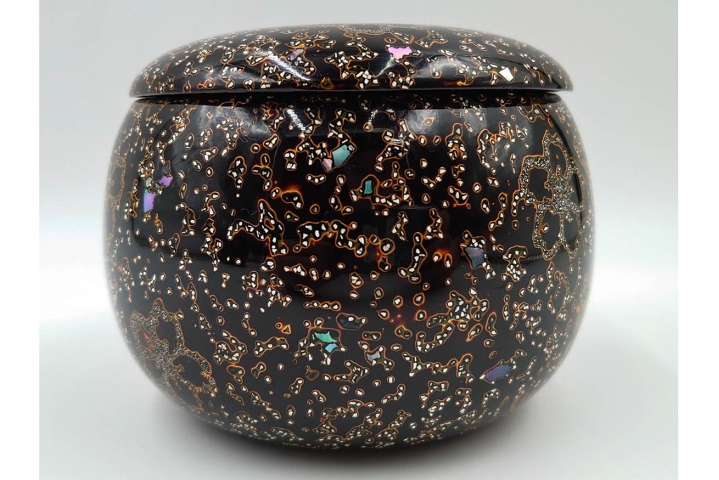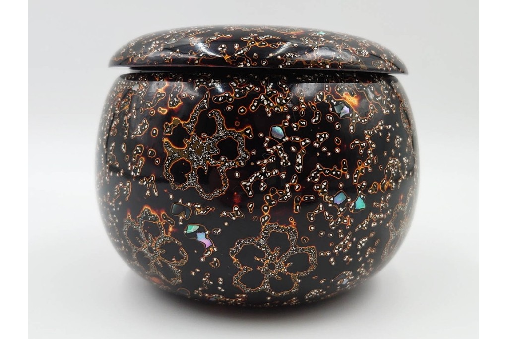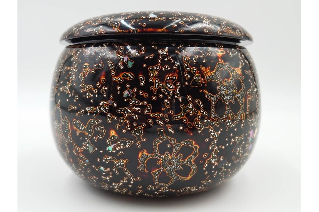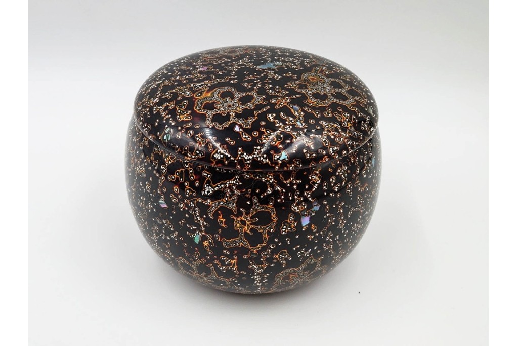 時代物 蛤・那智黒 螺鈿の花文が華やかな碁笥・碁石セット (R-084907)