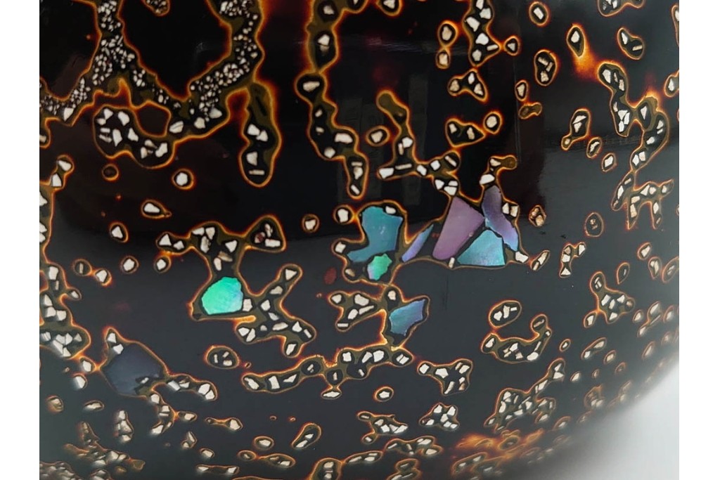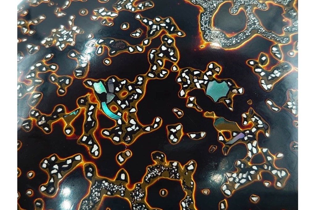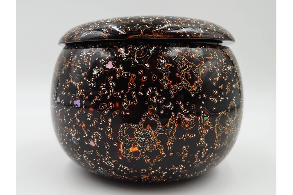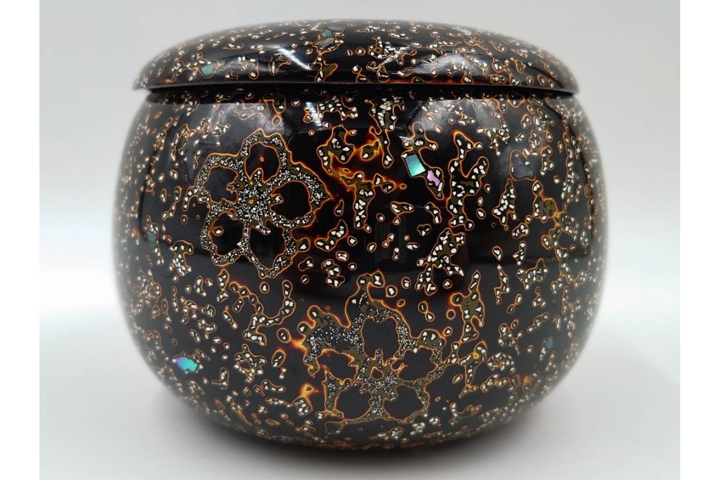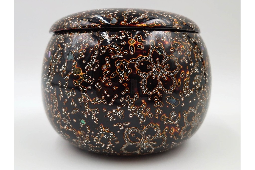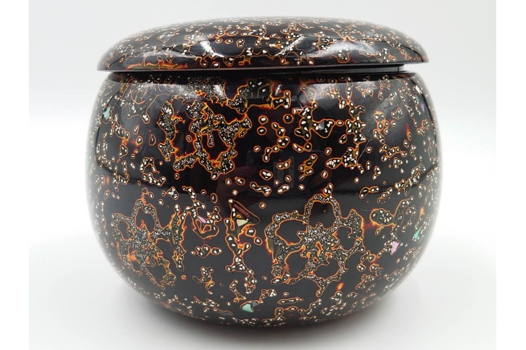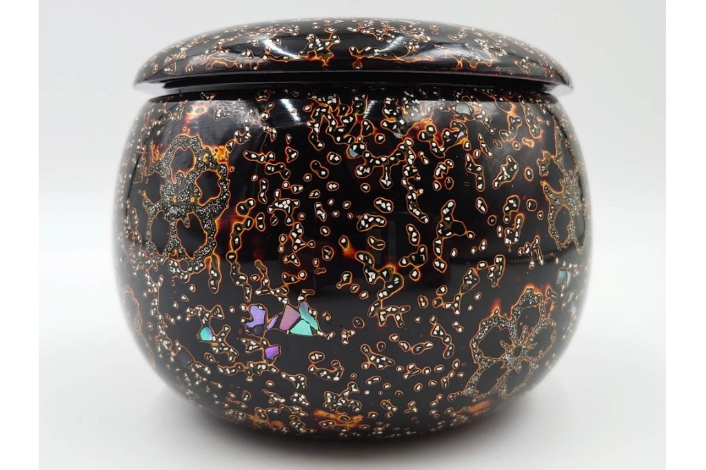 時代物 蛤・那智黒 螺鈿の花文が華やかな碁笥・碁石セット (R-084907)