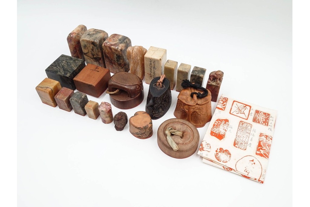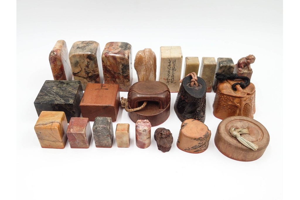 木彫・彫刻・篆刻 石材製と木製の古印材まとめて22点セット (R-084911)