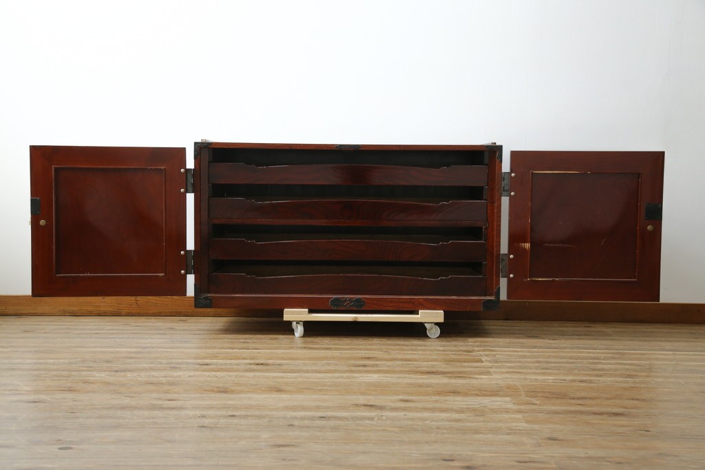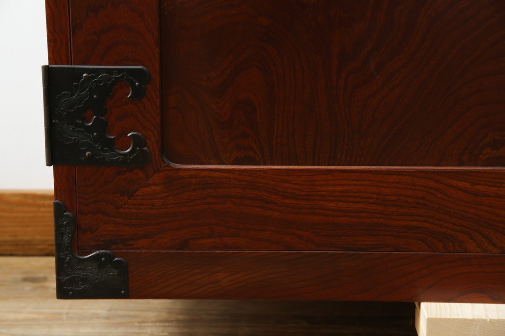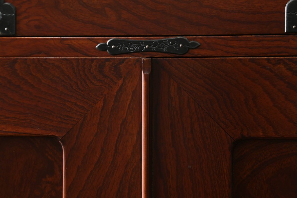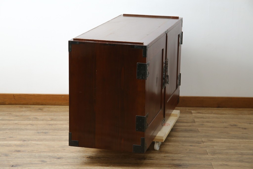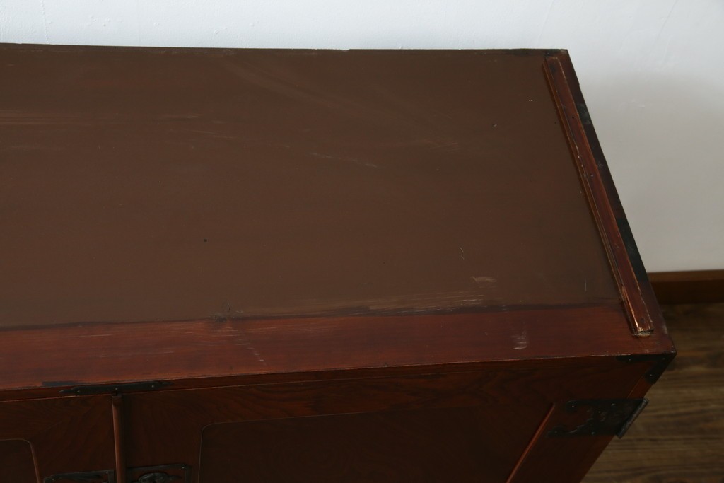 ラフジュ工房> キャビネット・戸棚> テレビ台・ローボード > 《天板取り付け加工費込み》 和製ヴィンテージ 美品!! 前面(欅材) 上杢目 手打ち金具が素敵な木地呂塗りの観音開き仙台箪笥 (R-084931)