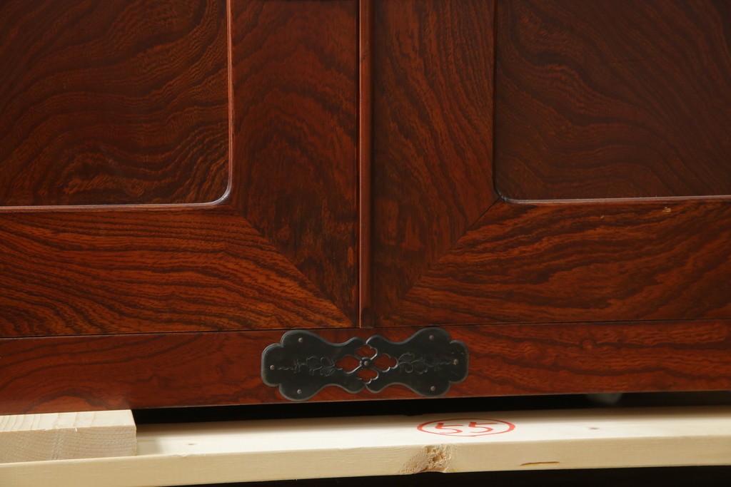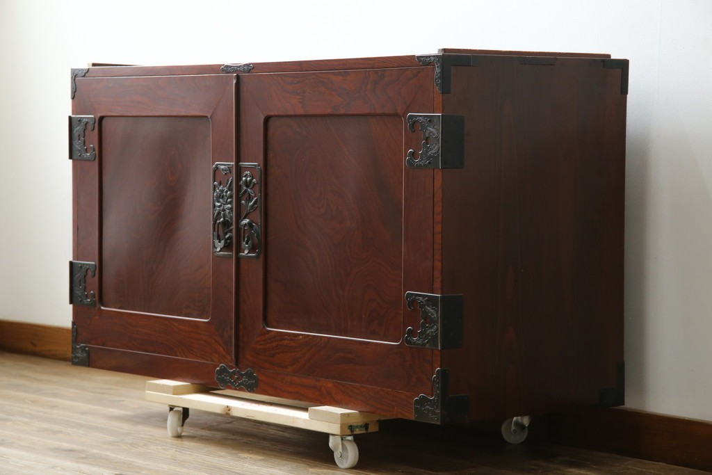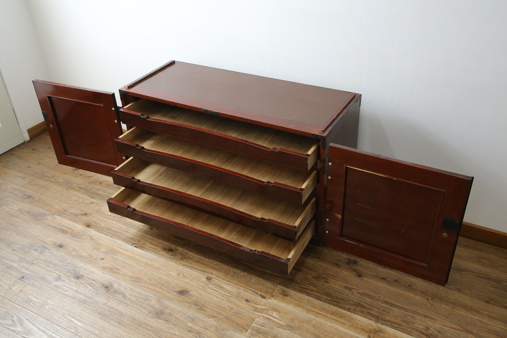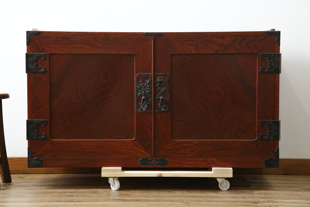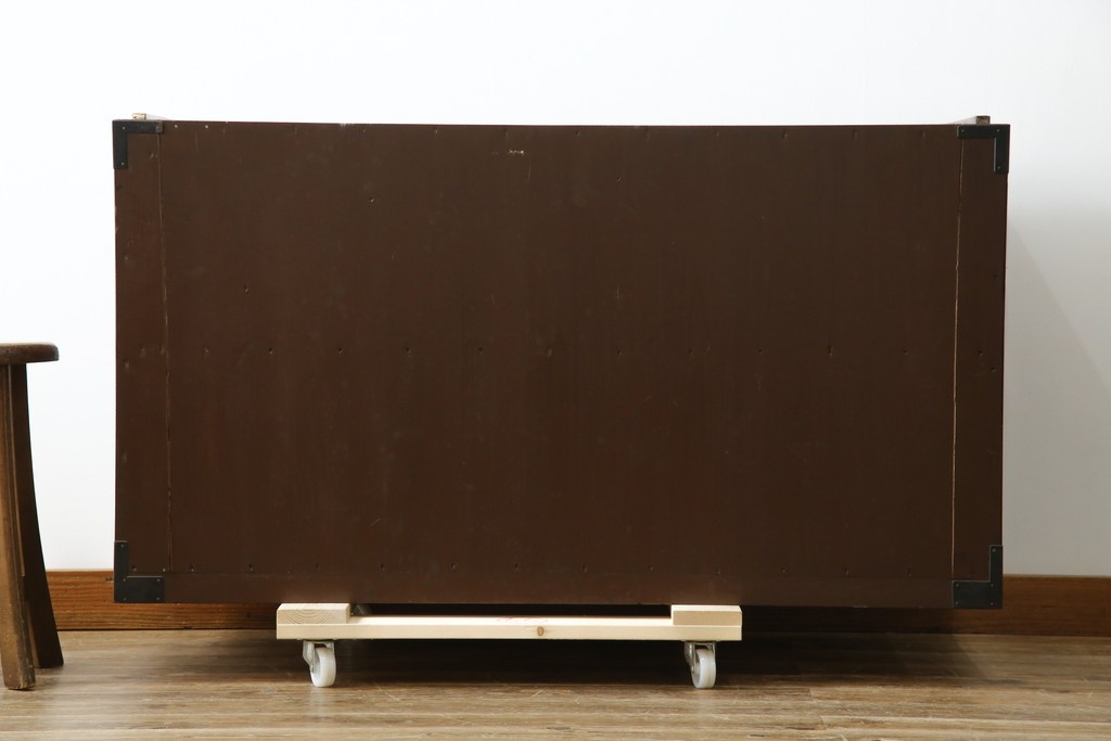ラフジュ工房> キャビネット・戸棚> テレビ台・ローボード > 《天板取り付け加工費込み》 和製ヴィンテージ 美品!! 前面(欅材) 上杢目 手打ち金具が素敵な木地呂塗りの観音開き仙台箪笥 (R-084931)