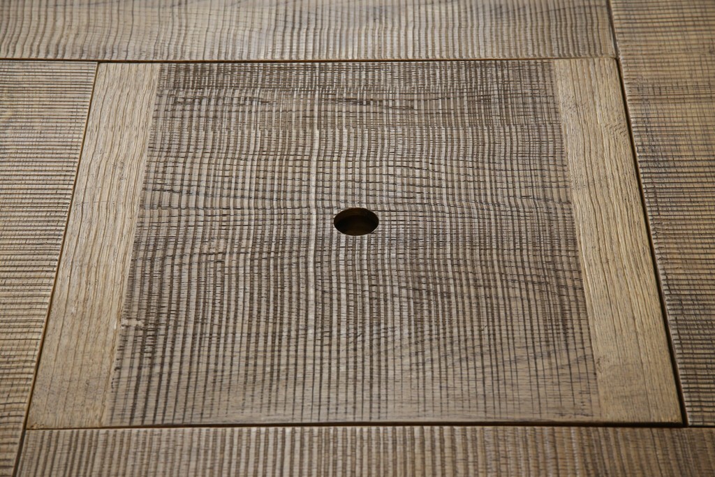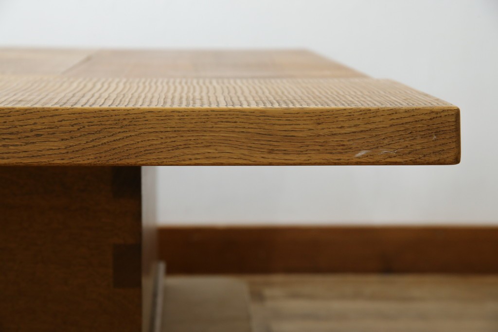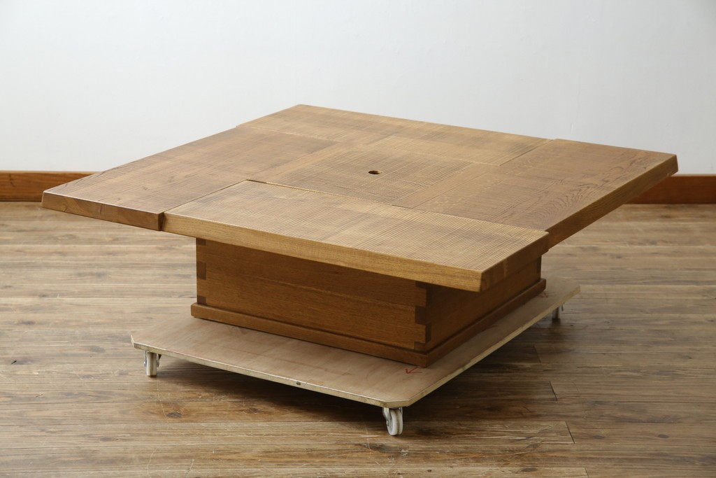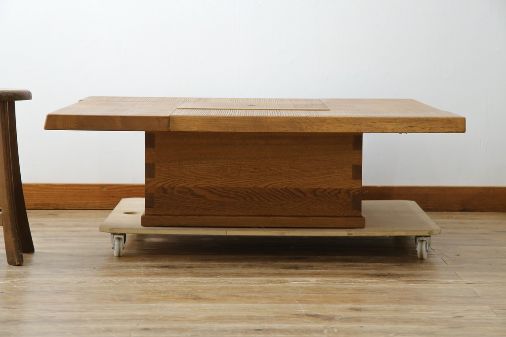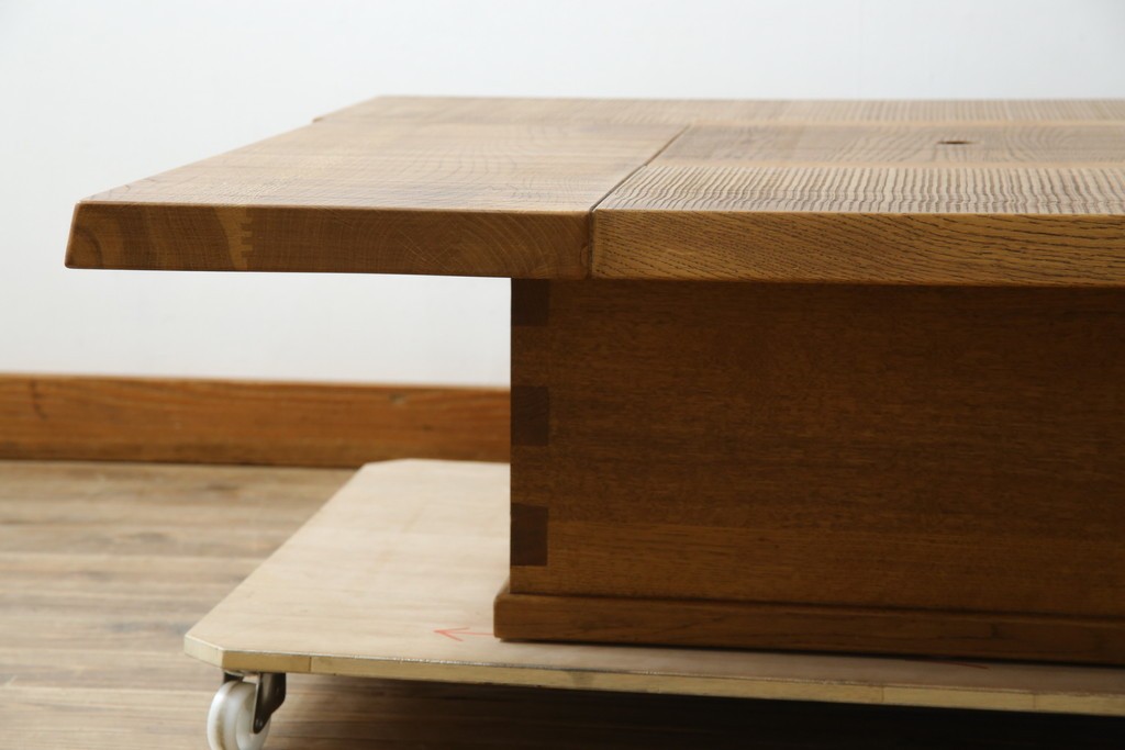 ラフジュ工房> テーブル> センターテーブル・ローテーブル > 中古 国産 職人手作り ナラ材 天板の鋸目(のこめ)仕上げの意匠がおしゃれな囲炉裏テーブル (R-084940)