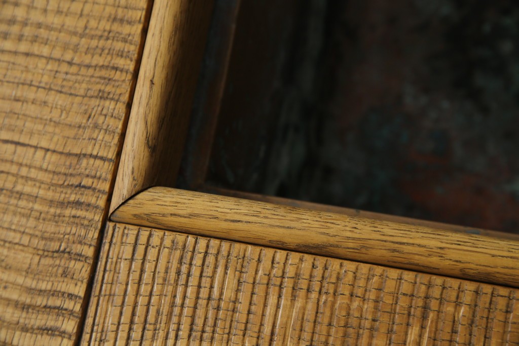 ラフジュ工房> 火鉢> 囲炉裏テーブル > 中古 国産 職人手作り ナラ材 天板の鋸目(のこめ)仕上げの意匠がおしゃれな囲炉裏テーブル (R-084940)