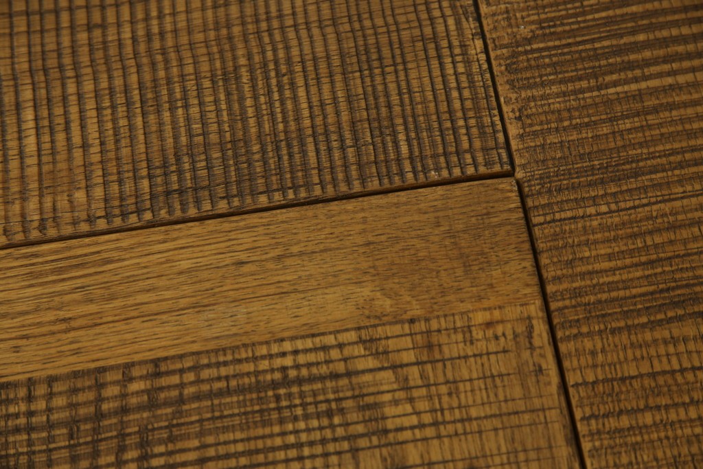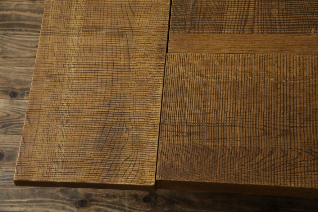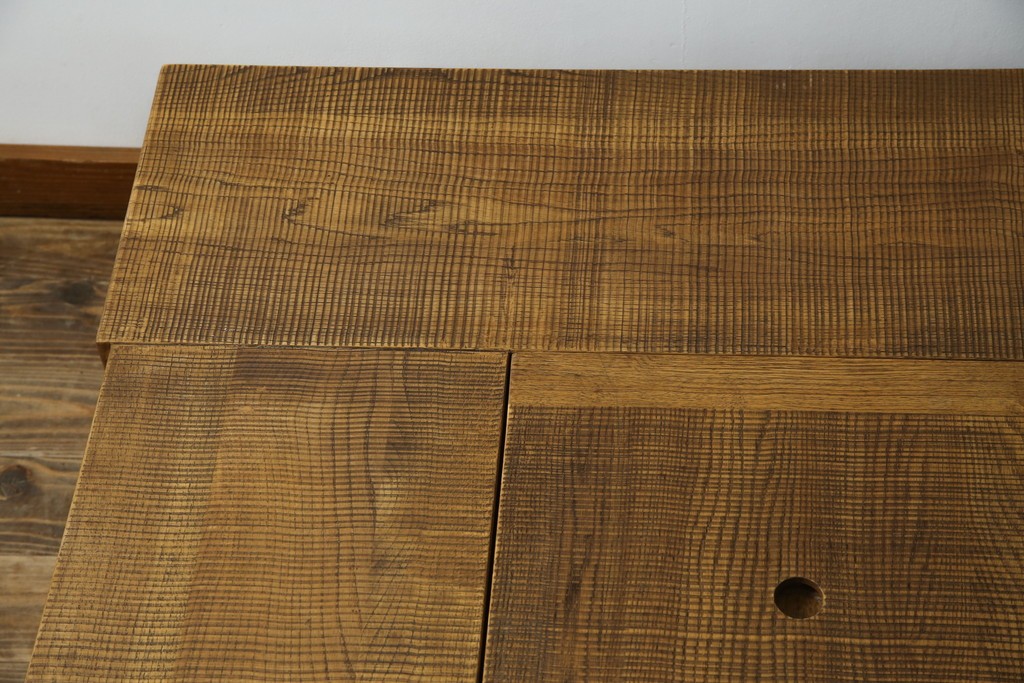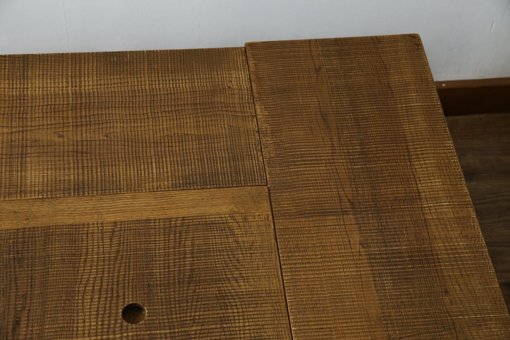• 中古 国産 職人手作り ナラ材 天板の鋸目(のこめ)仕上げの意匠がおしゃれな囲炉裏テーブル (R-084940)