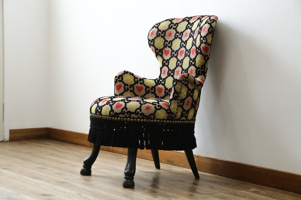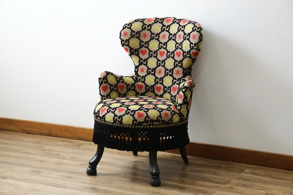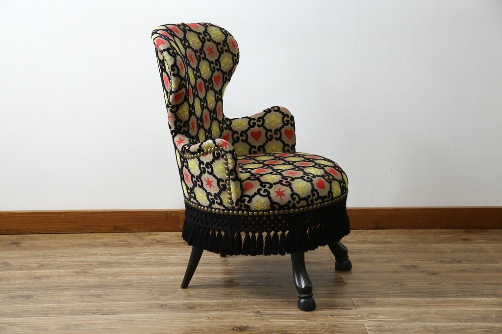 コンパクトでありながら存在感は十分。リビングのアクセントチェアとしてはもちろん、サロン、ブティック、店舗演出にも最適です。美品コンディションで、飾る・使うの両方で楽しめる仕上がりとなっています。