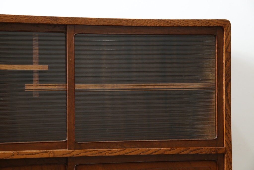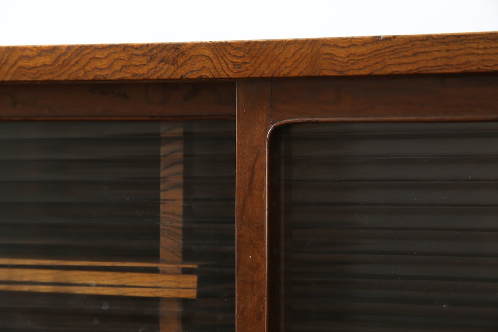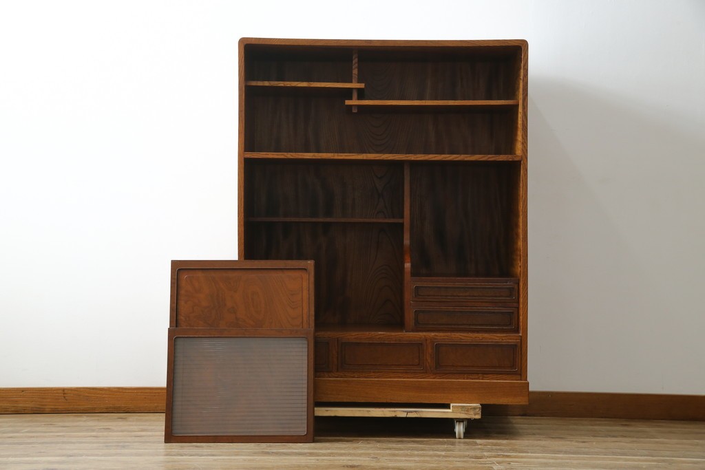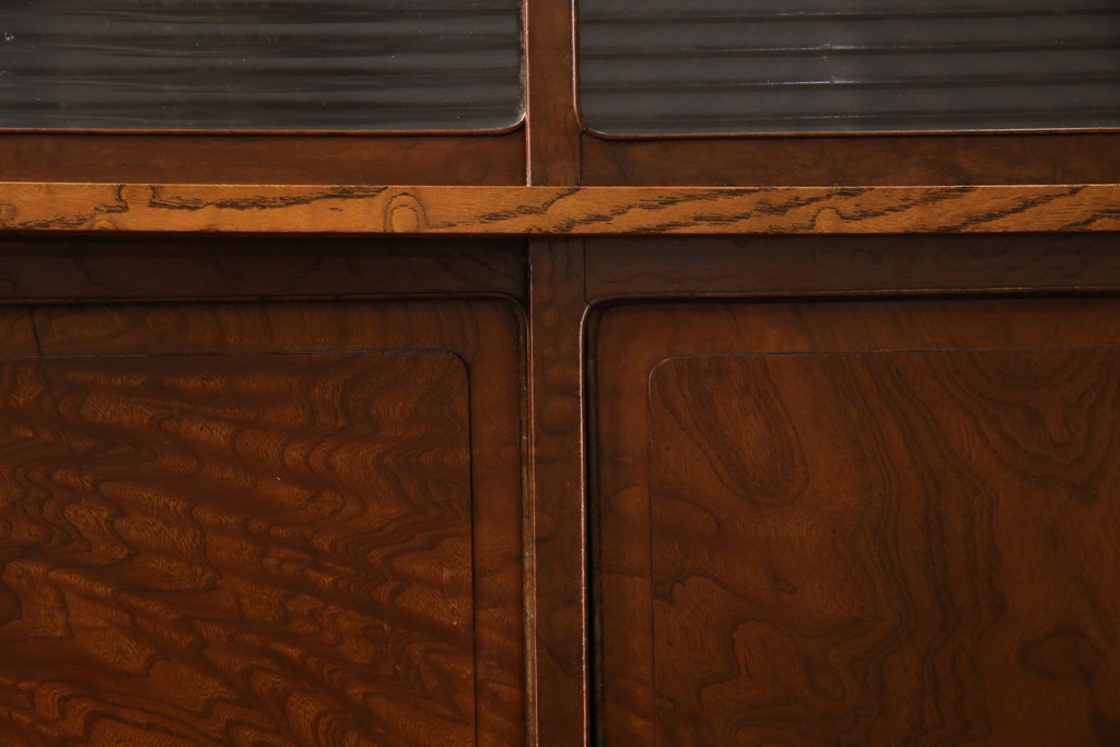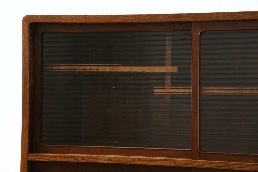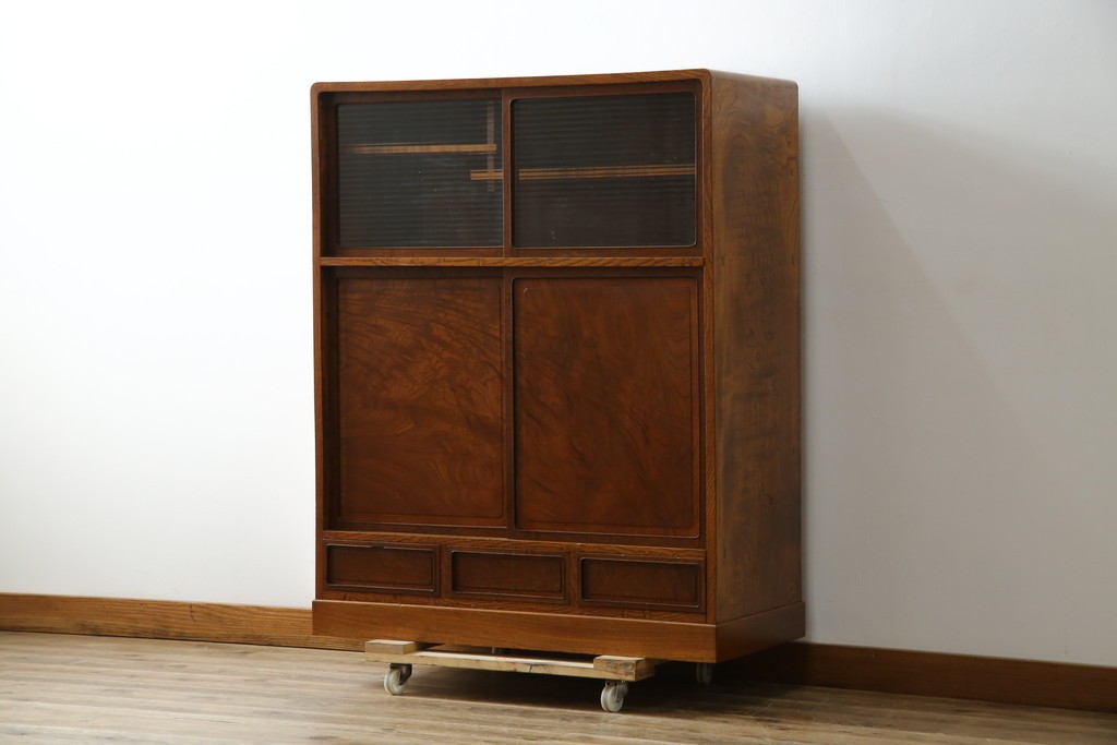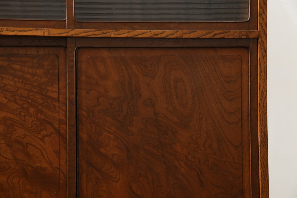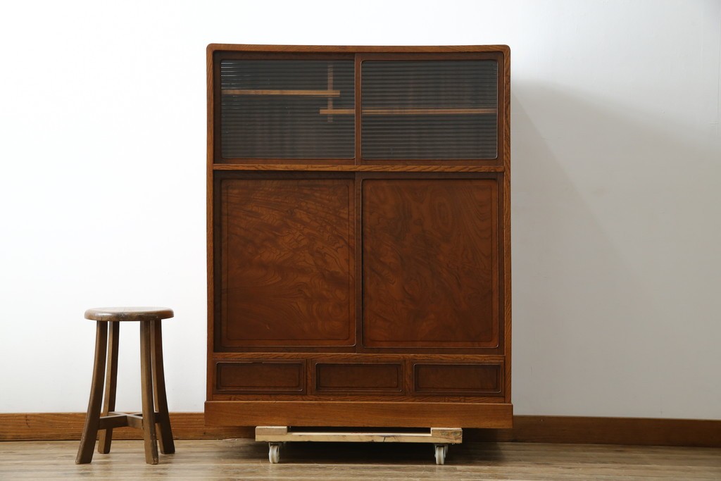 上部のモールガラスの引き戸は柔らかく光を取り込み、品格ある和の空間を演出します。古民家インテリアや和モダン空間にもよく馴染む、上質な逸品です。