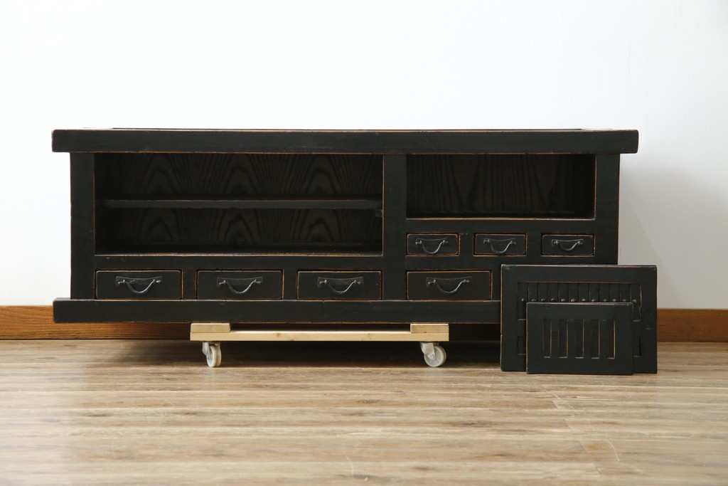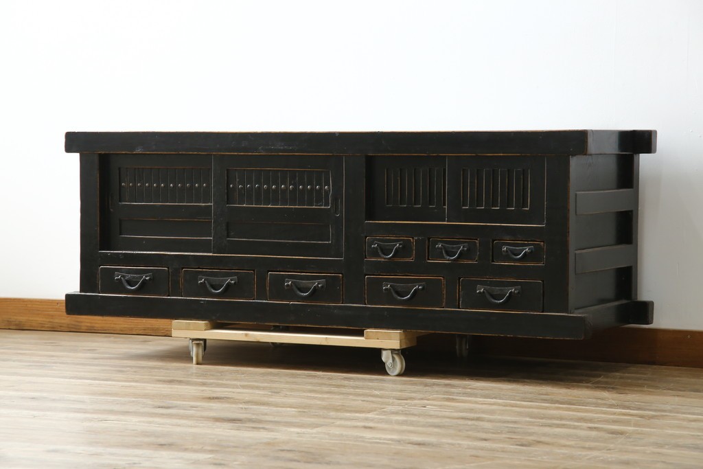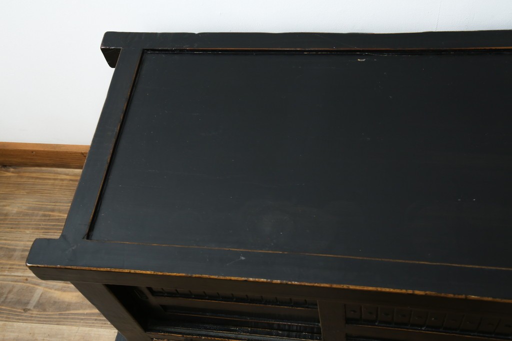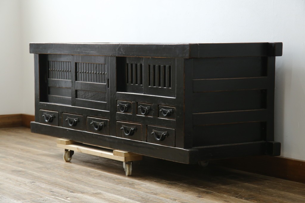 アンティーク調の趣が漂うアジアンヴィンテージの水屋箪笥ローボードです。