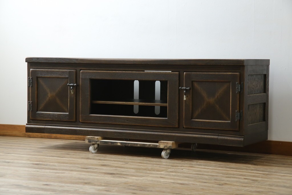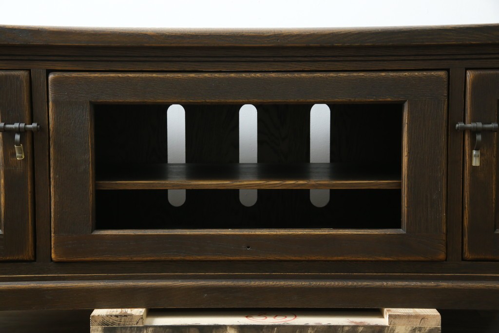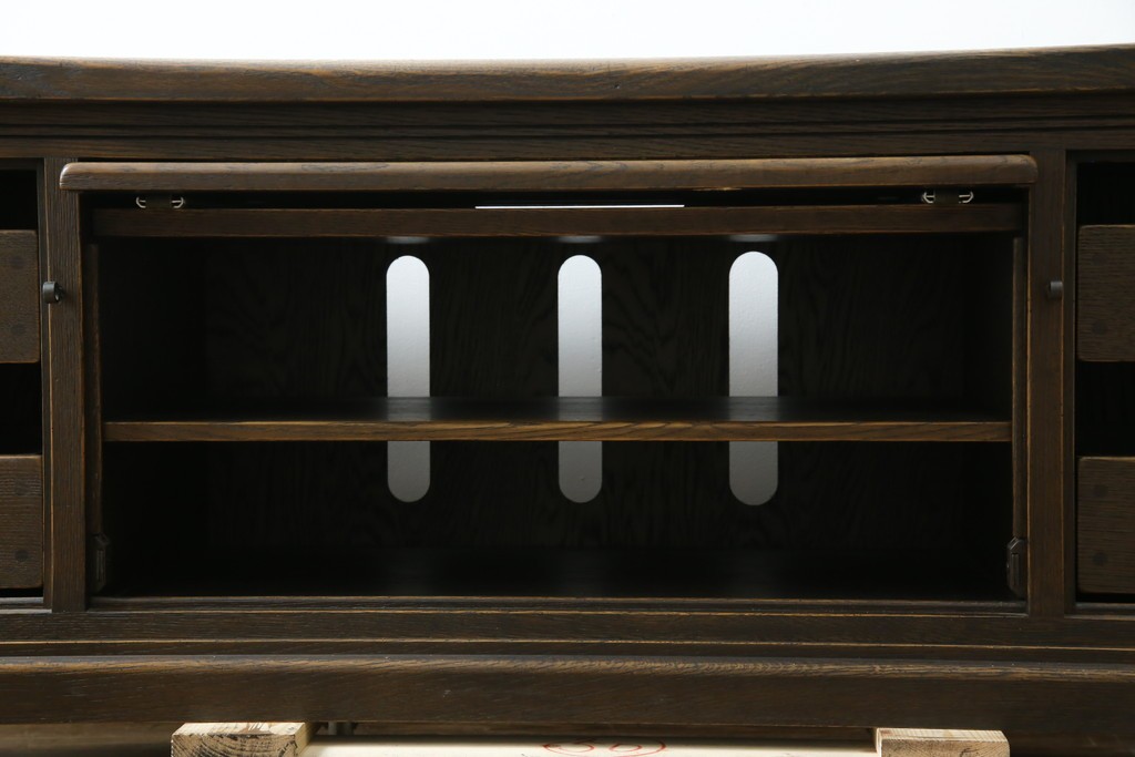 中央には機器類を置くためのスペースが設けられ、背面には配線用の開口も確認でき、実用性に配慮したつくりです。