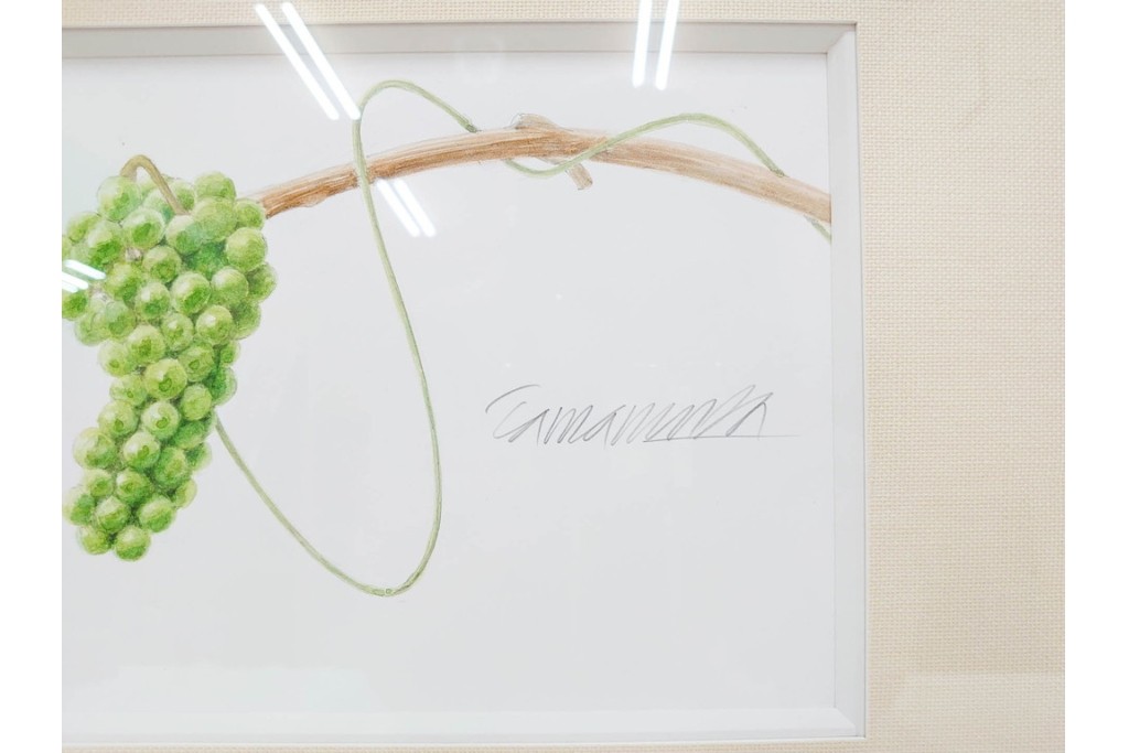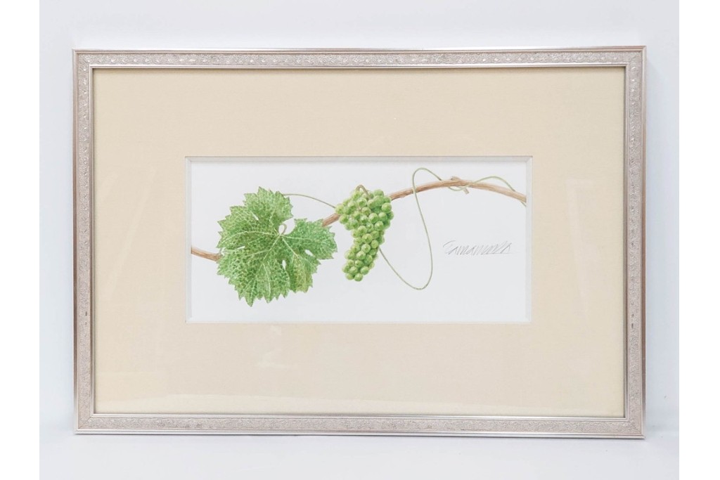 骨董・美術品> 日本画・洋画 > 真作 直筆サイン入り 玉村豊男 「ソーヴィニヨンブラン 2013 ヴィンテージ」 みずみずしいぶどうが描かれた水彩画 外箱付き (R-084958)