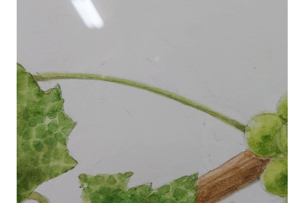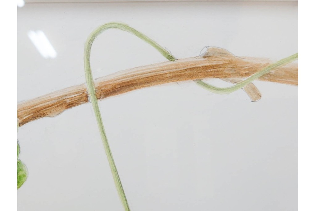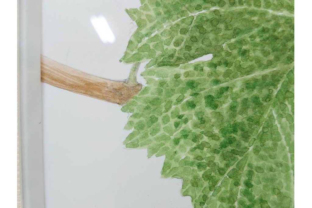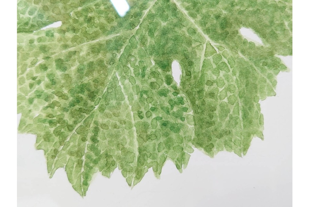 透明感のある水彩技法が生かされ、植物の生命感をやわらかく感じられる一枚です。