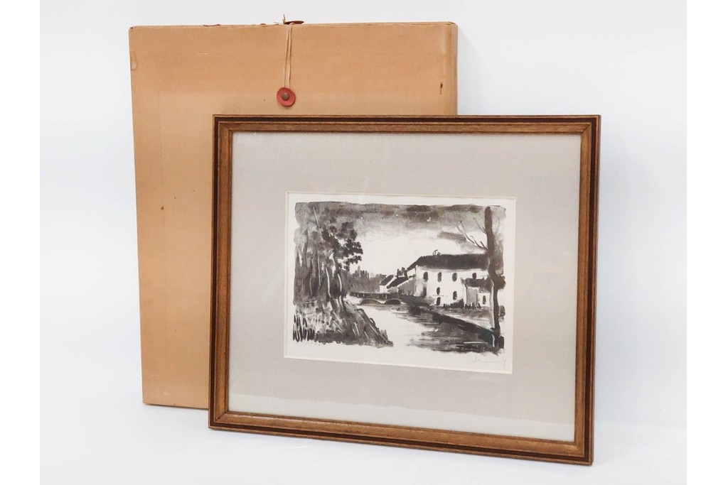 骨董・美術品> 日本画・洋画 > 真作 直筆サイン入り 1876~1958年モーリス・ド・ヴラマンク作 リトグラフ 「風景」 外箱付き (R-084959)