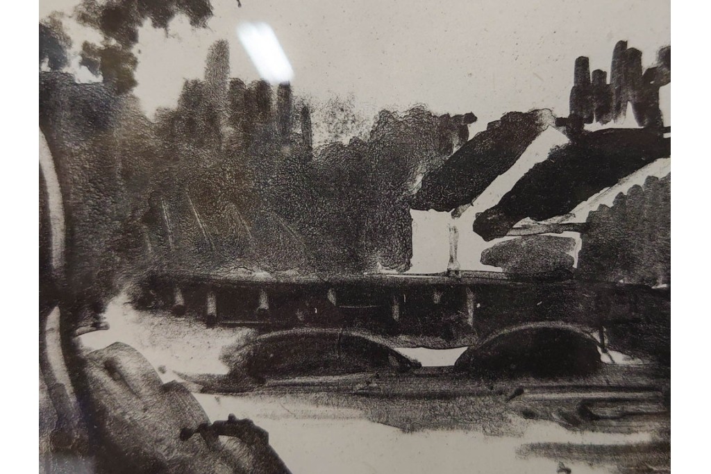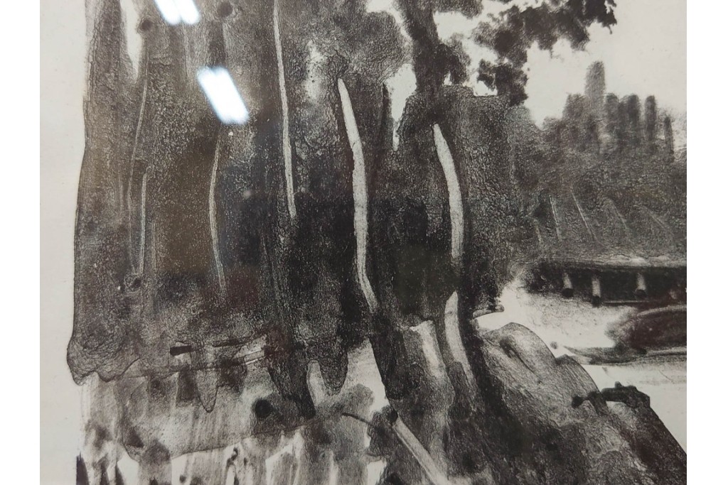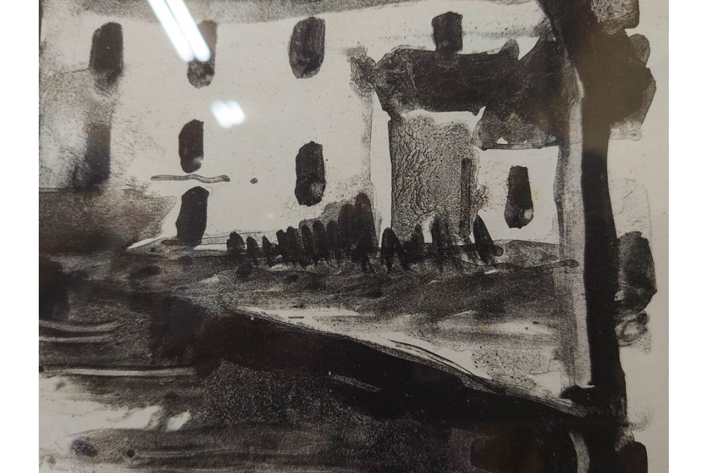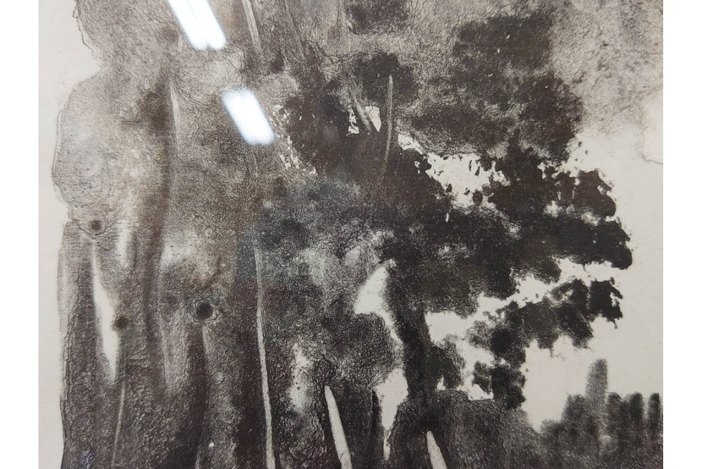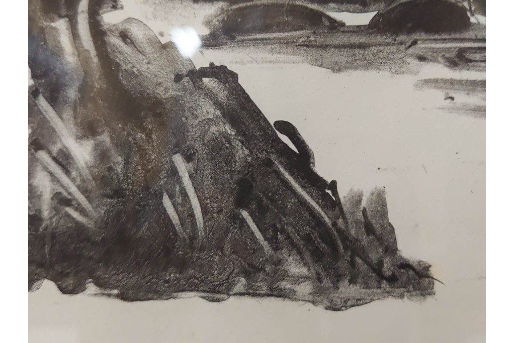 モノトーンで描かれた風景が独特の静けさを湛え、作家らしい力強い筆致が感じられます。