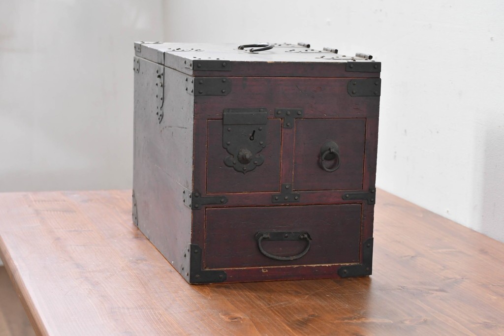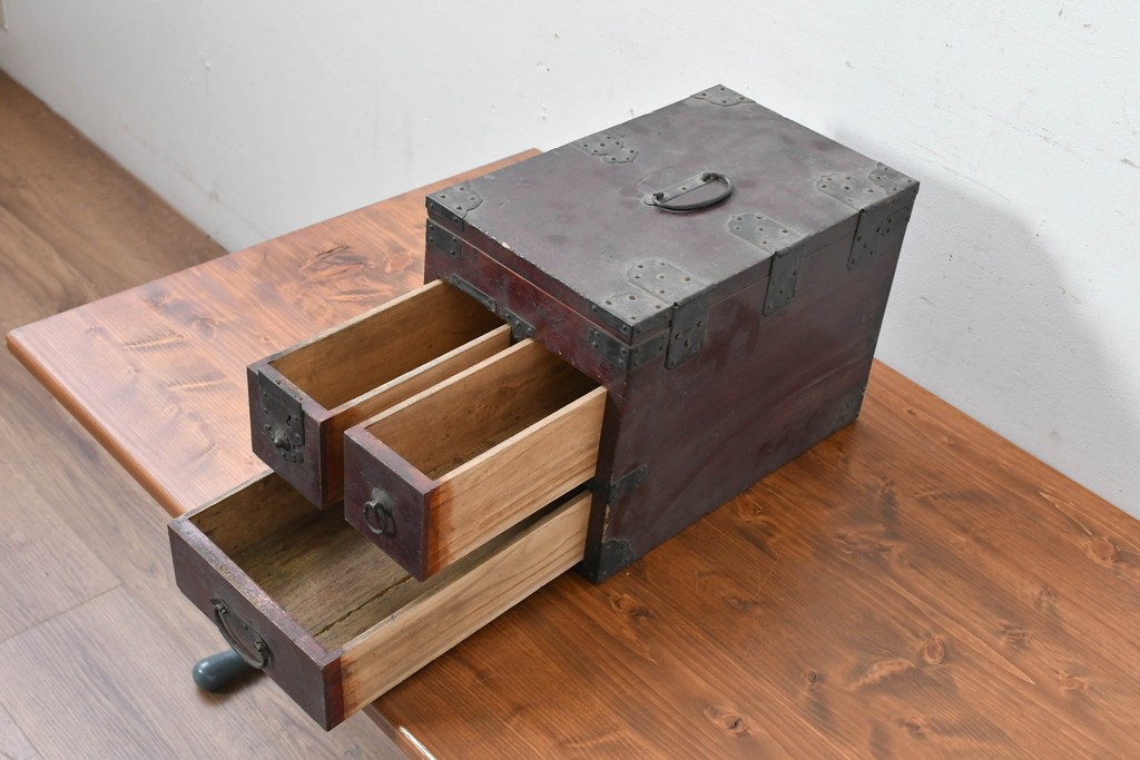ラフジュ工房> 小物収納・トランク> 小引き出し > 和製アンティーク 漆塗り 古き良き日本の職人技を感じさせる総桐硯箱 (R-085012)