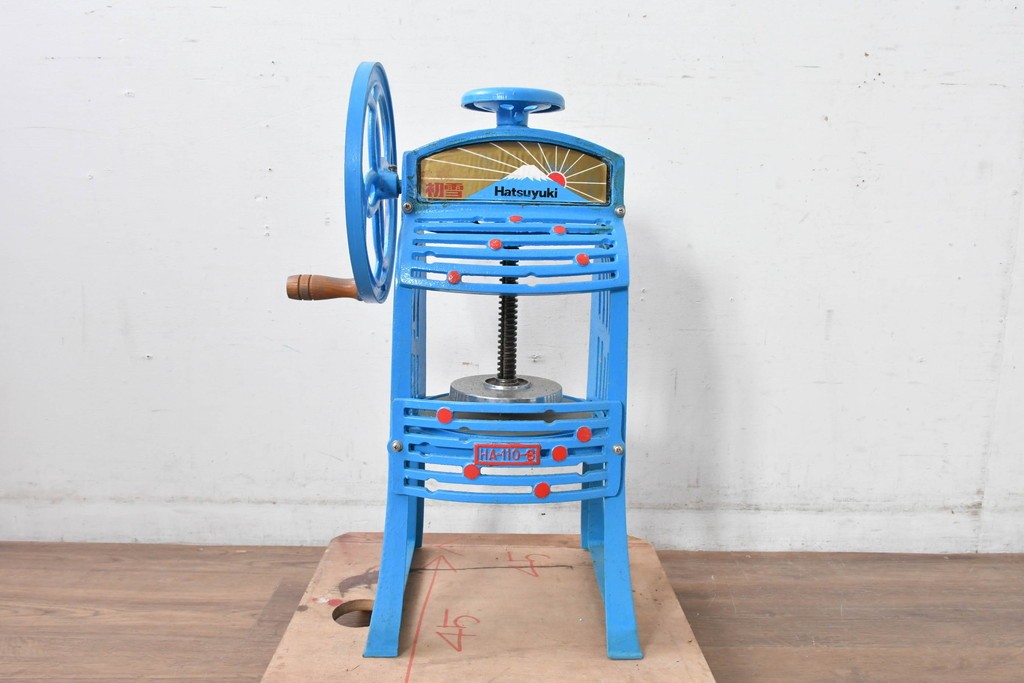 古道具・古民具 > 【簡易リペア限定品】和製ヴィンテージ 初雪(hatsuyuki) HA-110-S 青と赤のレトロカラーがインテリアにも映える手動かき氷機 (R-085013)