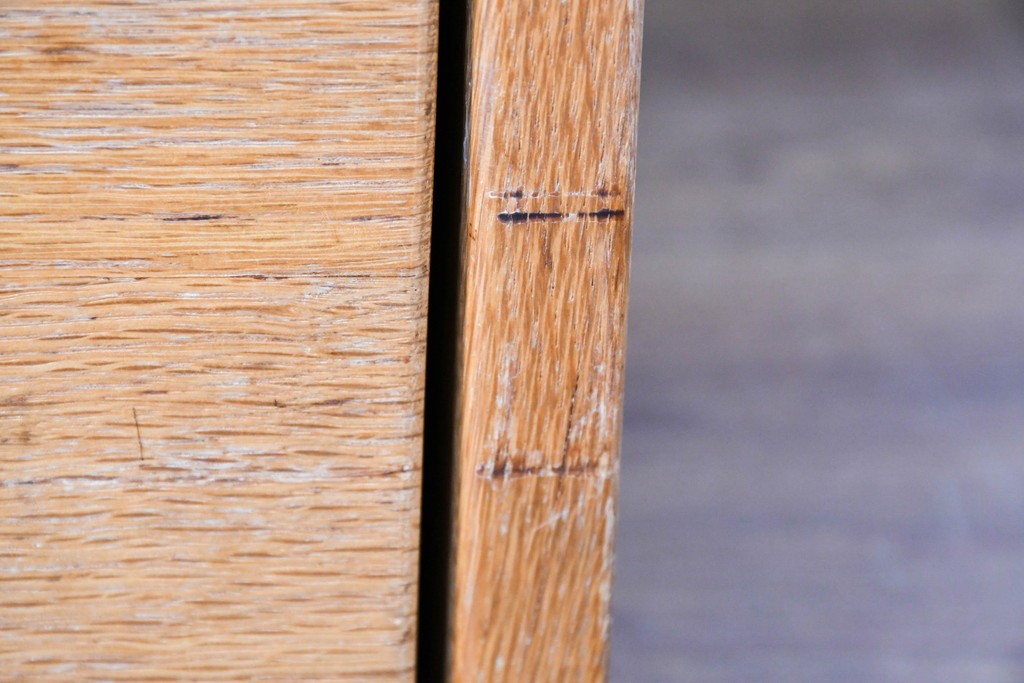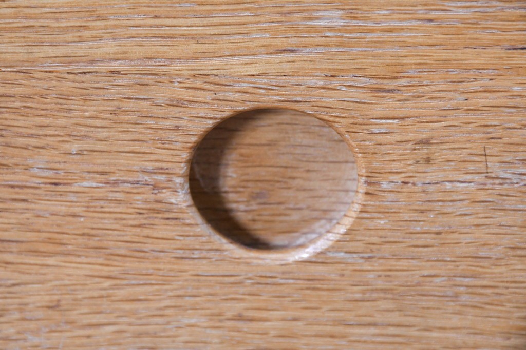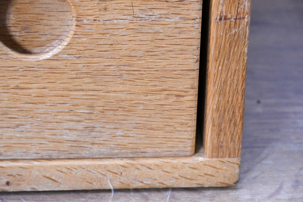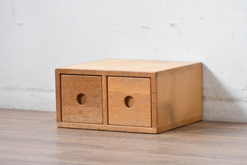 和製ビンテージ ナラ材 ナチュラルな木味が魅力!丸穴取っ手の小引き出し (R-085024)