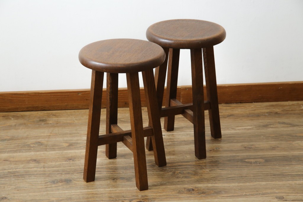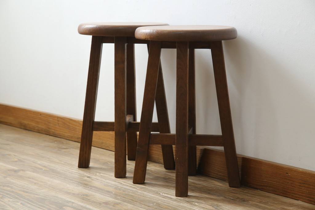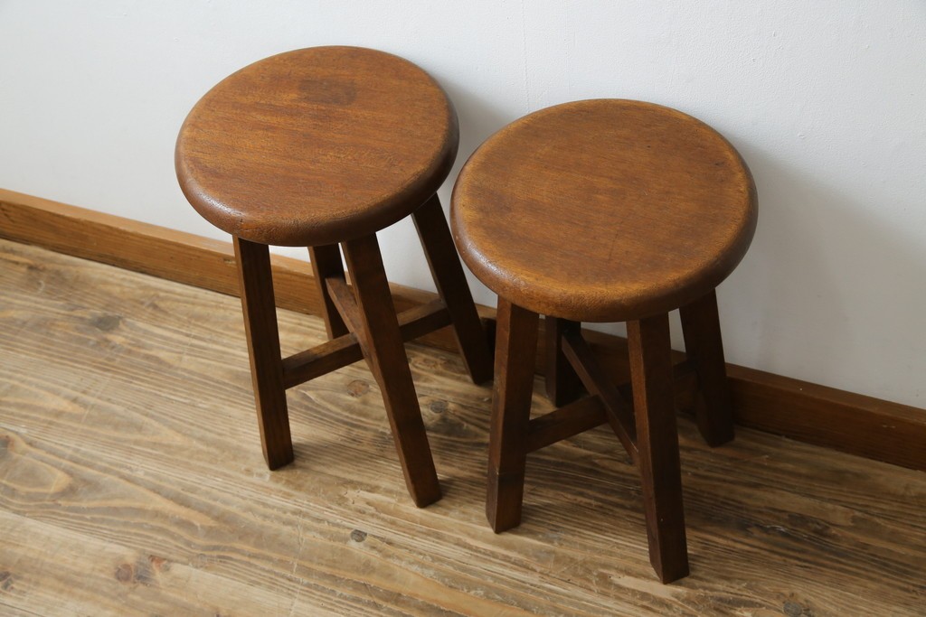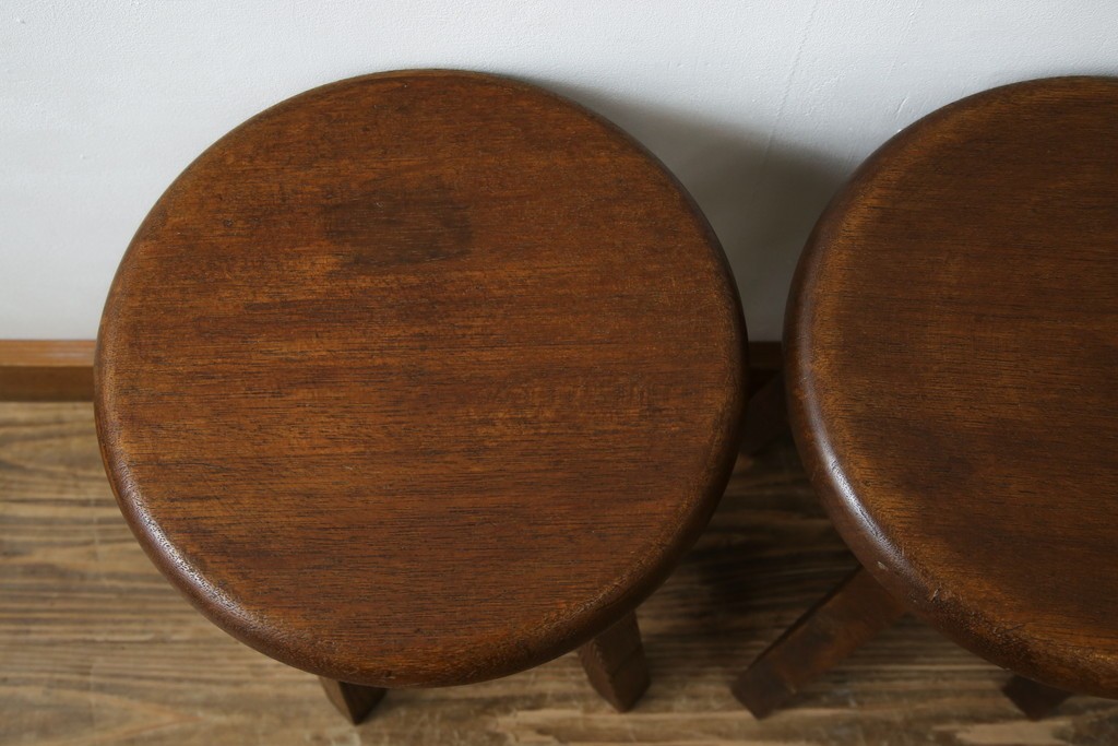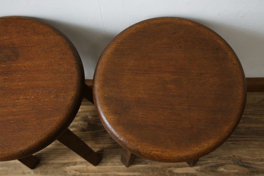 和製ヴィンテージ 古い木のぬくもりを感じるスツール2脚セット (R-085027)