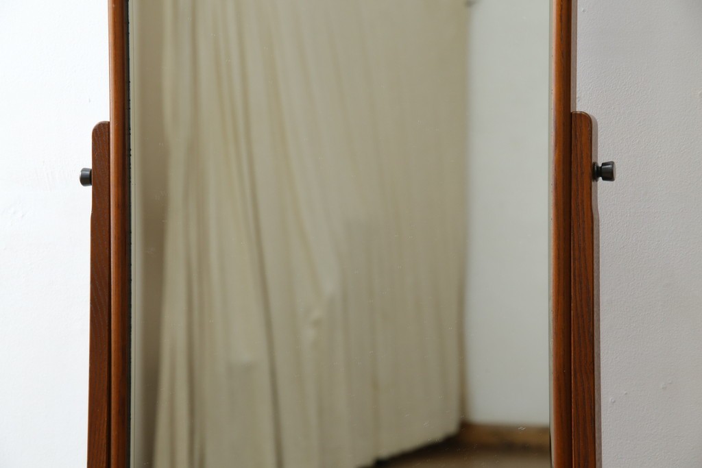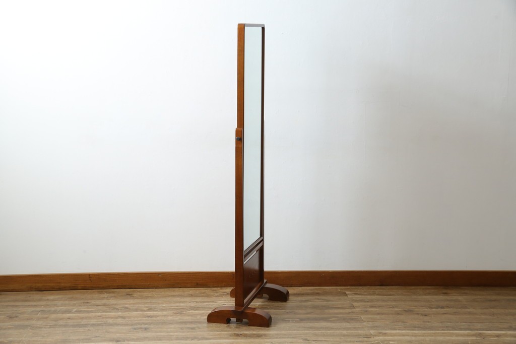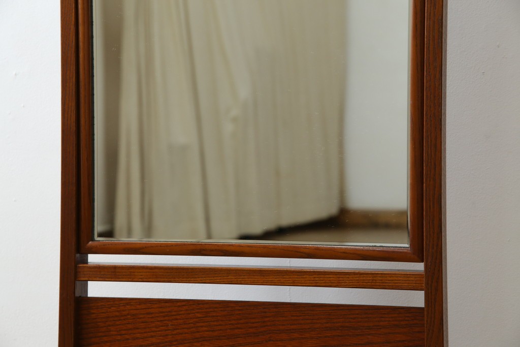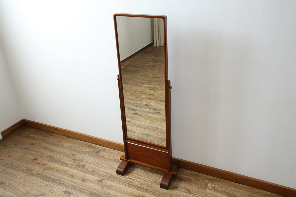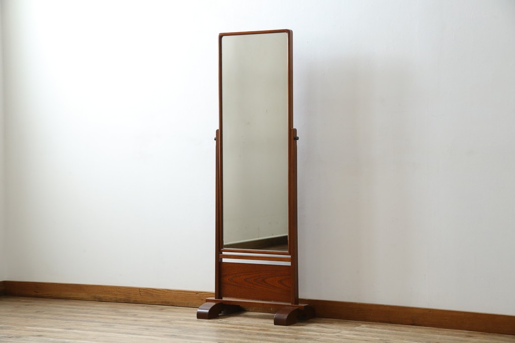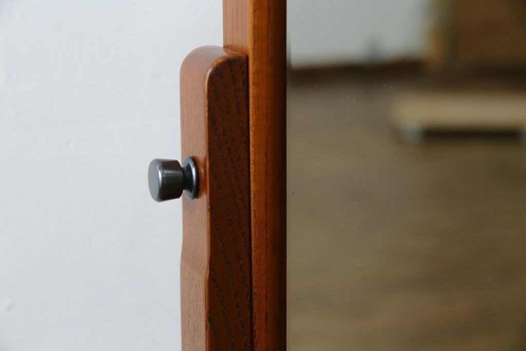 中古 美品 欅(ケヤキ)材の美しい木目が際立つスタンドミラー 定価約11万円相当 (R-085028)