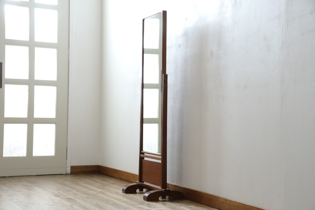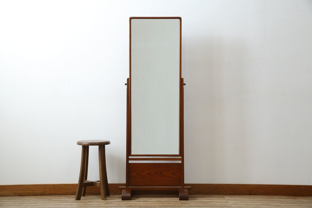 鏡 > 中古 美品 欅(ケヤキ)材の美しい木目が際立つスタンドミラー 定価約11万円相当 (R-085028)
