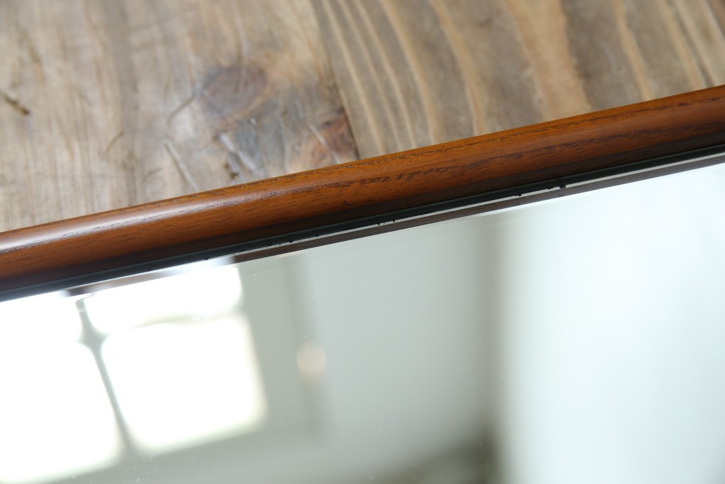 鏡> 姿見 > 中古 美品 欅(ケヤキ)材の美しい木目が際立つスタンドミラー 定価約11万円相当 (R-085028)