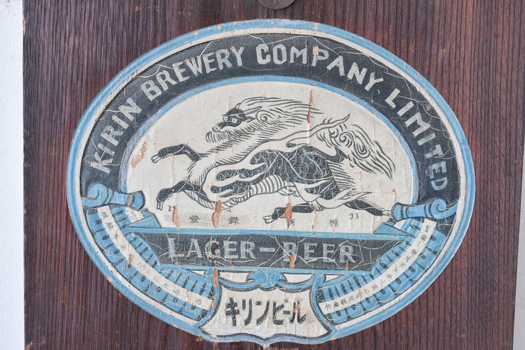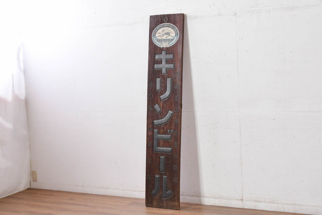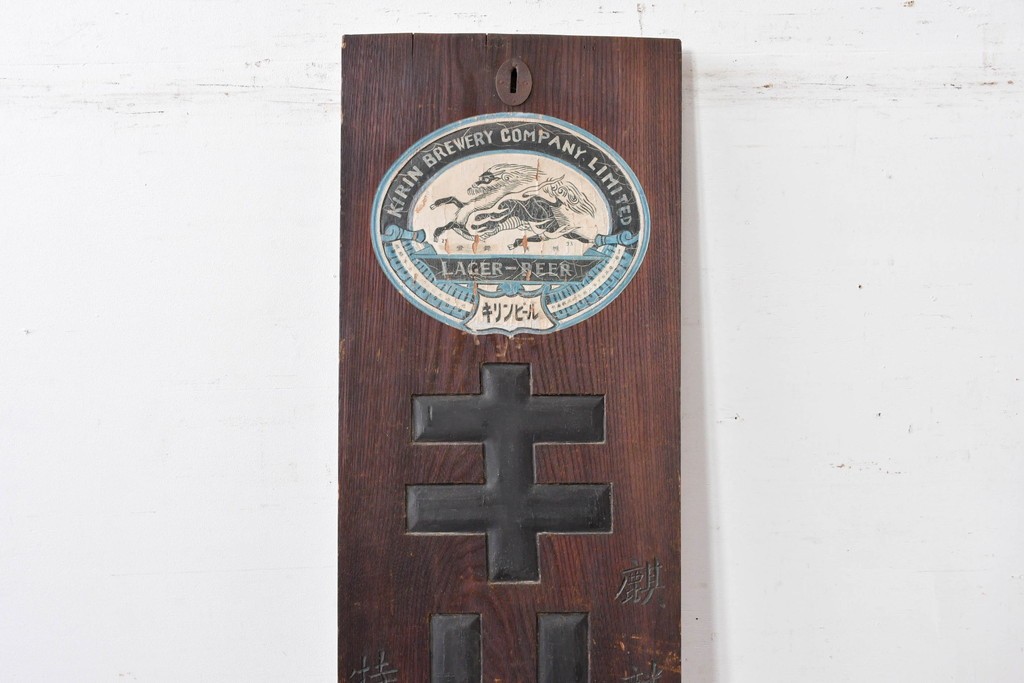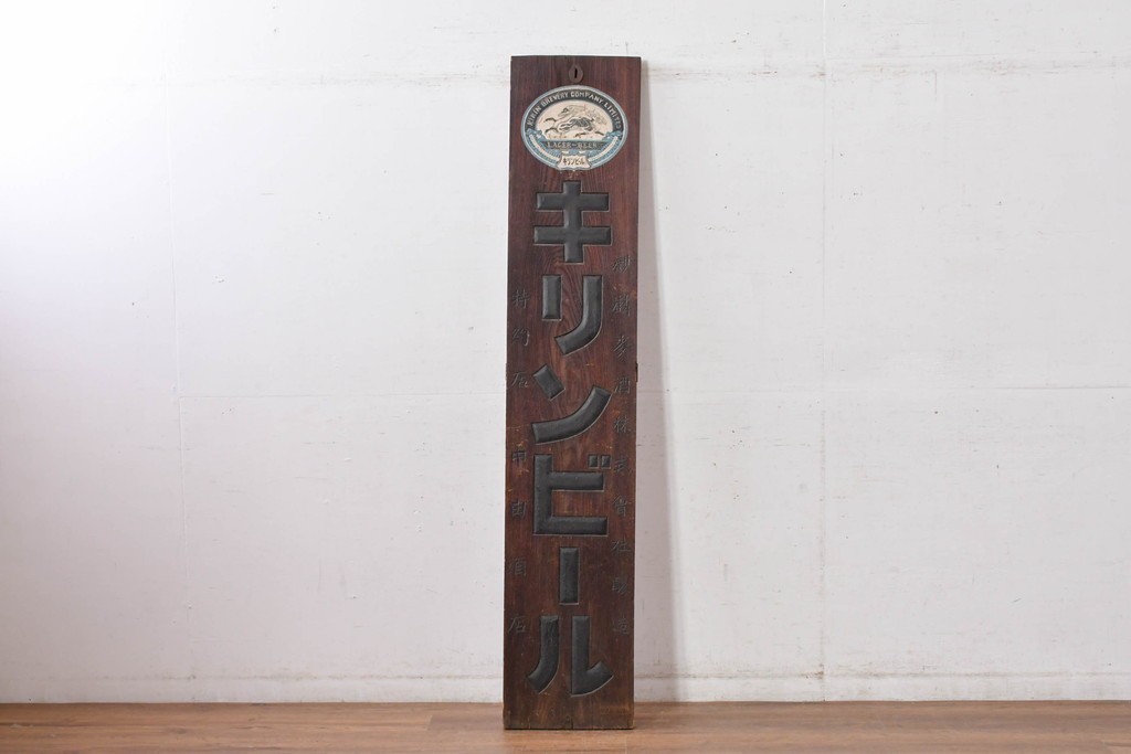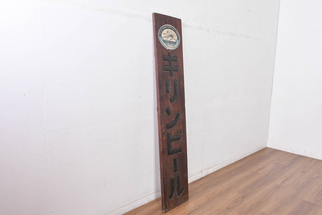 古道具・古民具 > 和製アンティーク 当時物 欅(ケヤキ)材 キリンビール 経年による風合いが味わい深い木製看板 (R-085029)