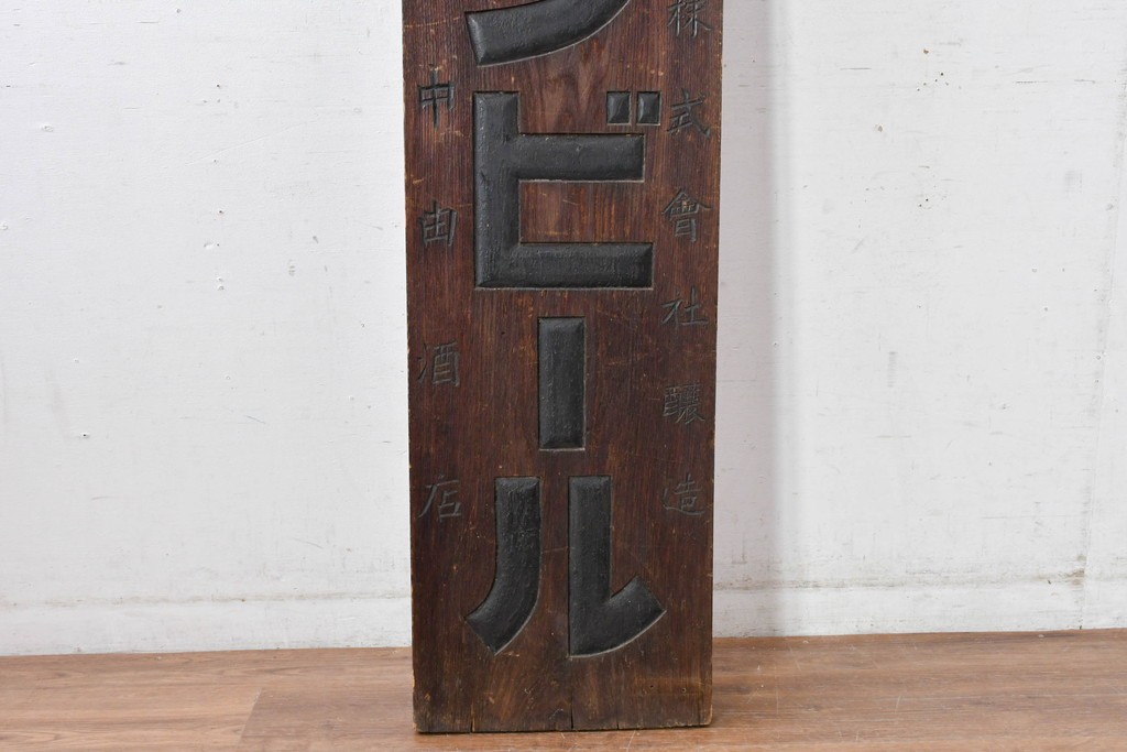 和製アンティーク 当時物 欅(ケヤキ)材 キリンビール 経年による風合いが味わい深い木製看板 (R-085029)