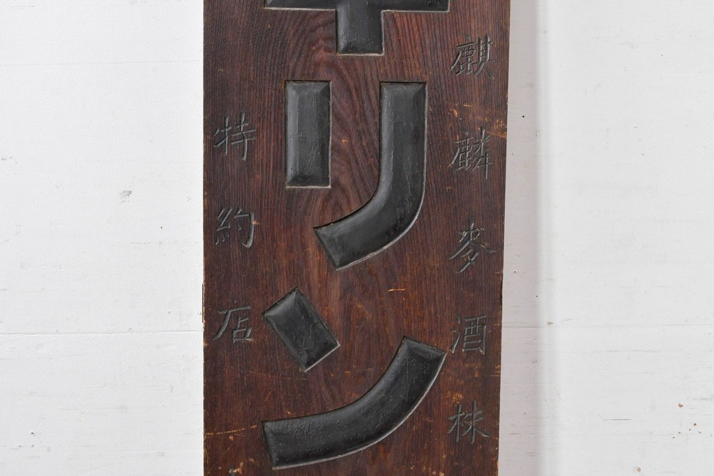 雑貨 > 和製アンティーク 当時物 欅(ケヤキ)材 キリンビール 経年による風合いが味わい深い木製看板 (R-085029)