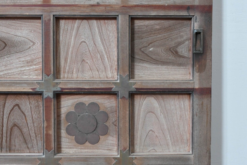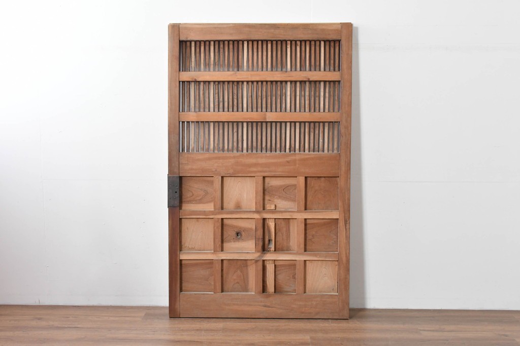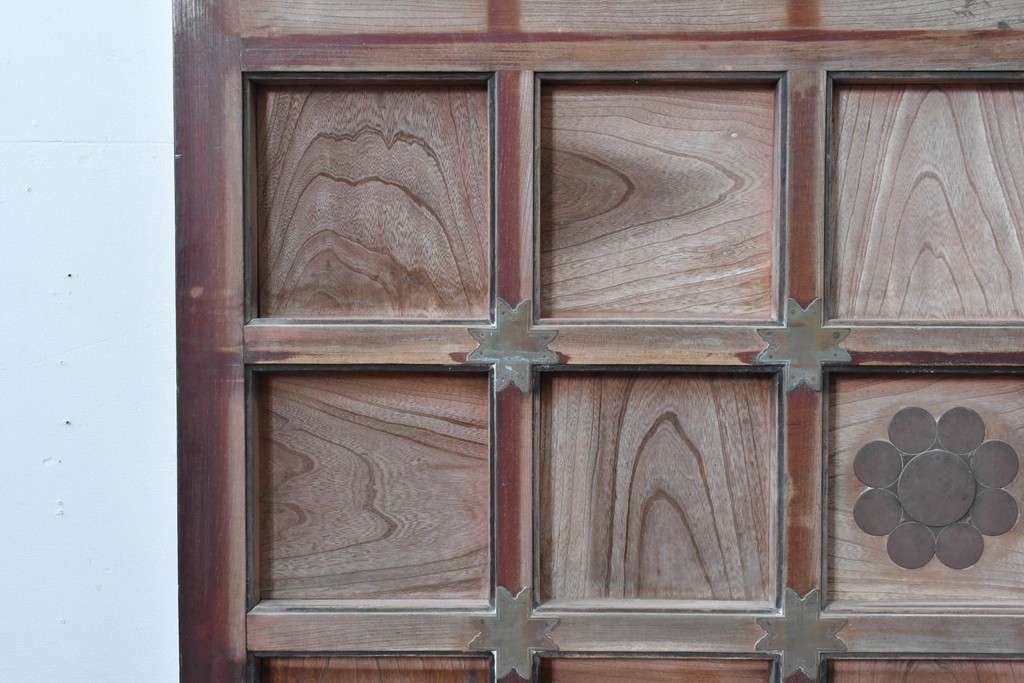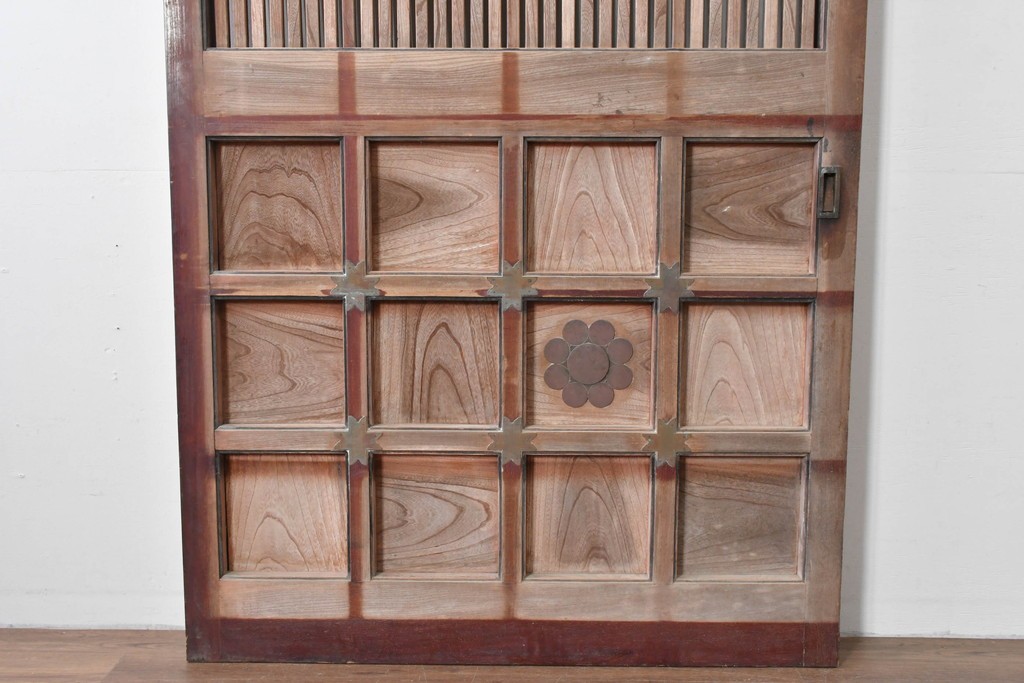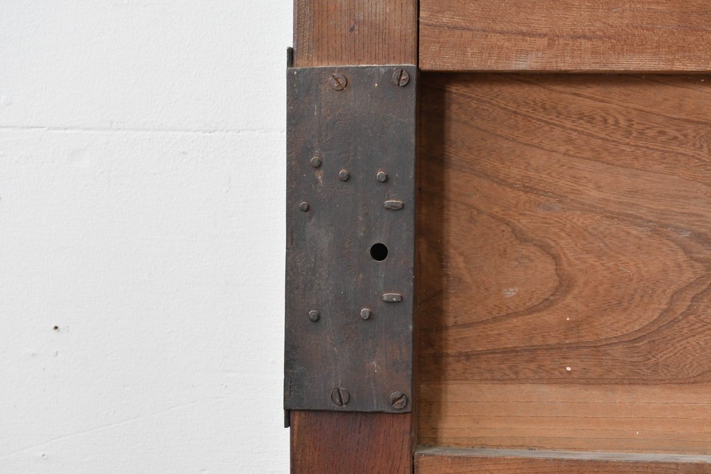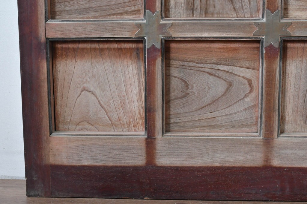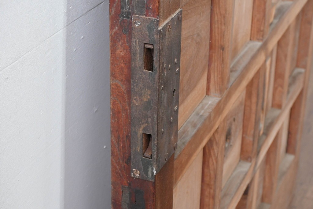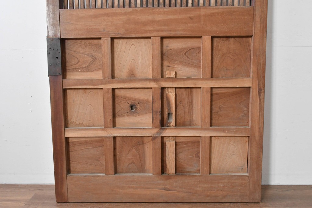 和製アンティーク 上手物 総欅(ケヤキ)材 重厚感ある格子と金具が印象的な北陸格子蔵戸1枚 (R-085044)