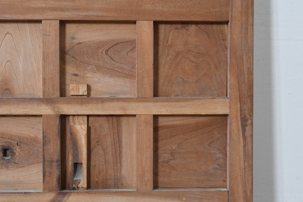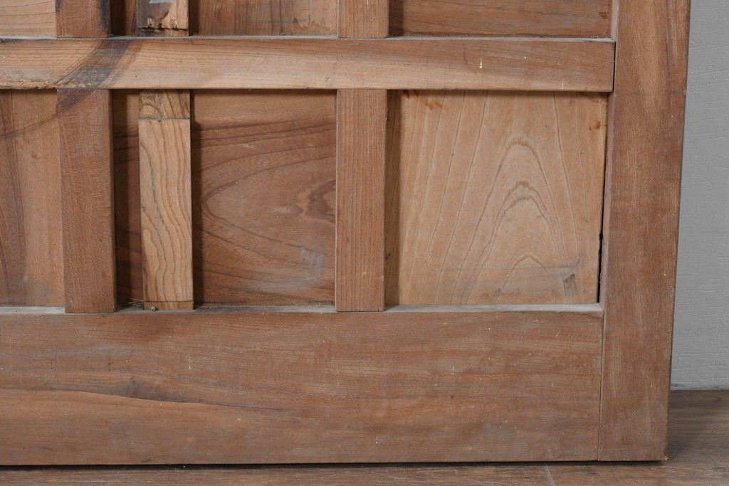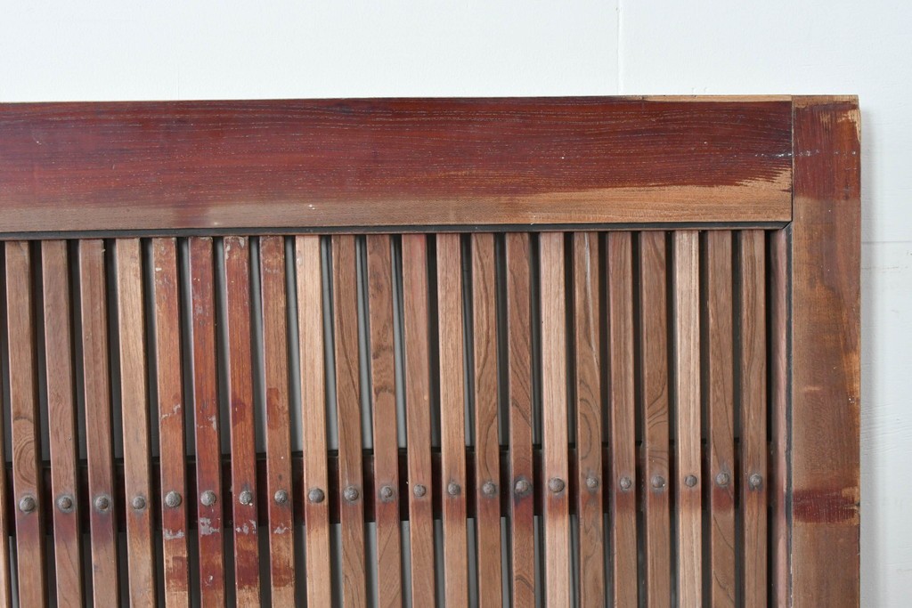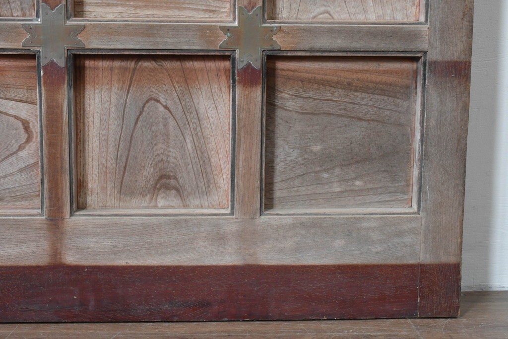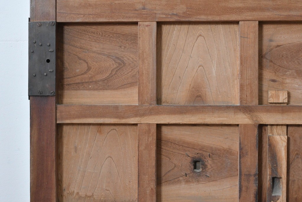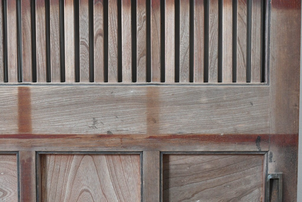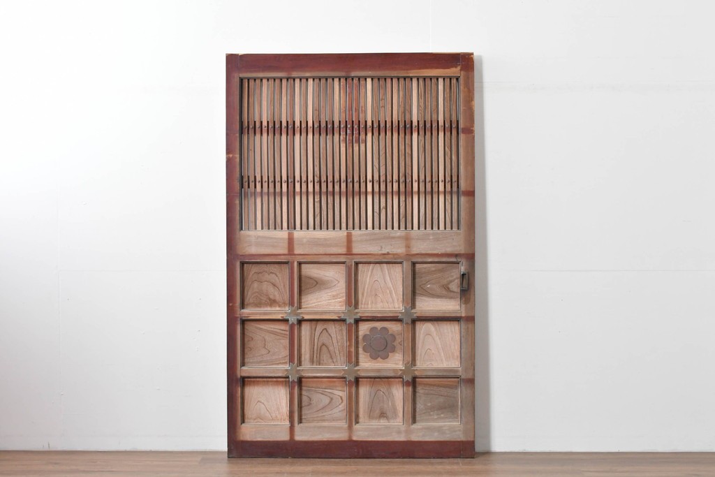 和製アンティーク 上手物 総欅(ケヤキ)材 重厚感ある格子と金具が印象的な北陸格子蔵戸1枚 (R-085044)