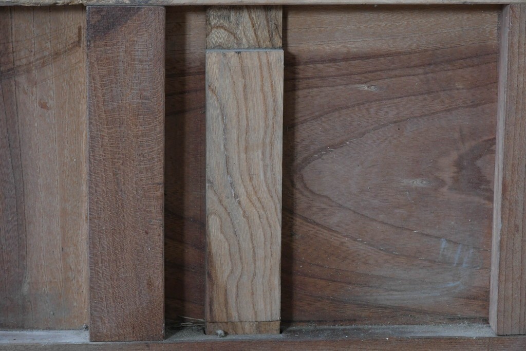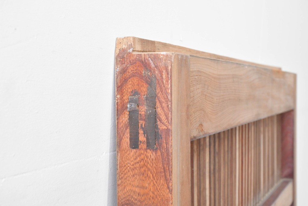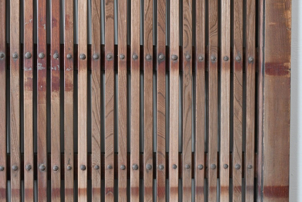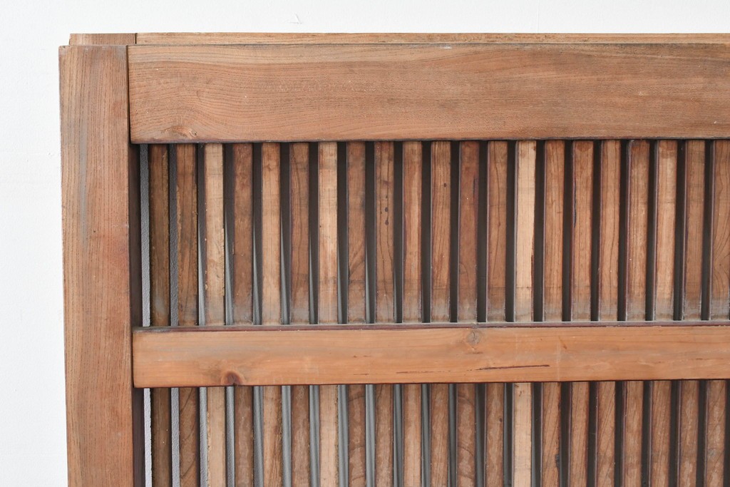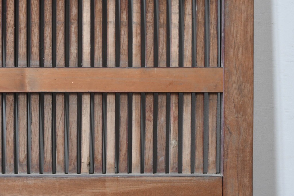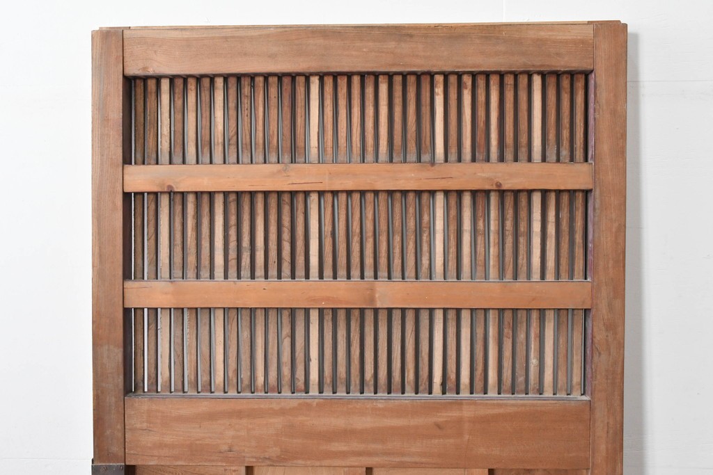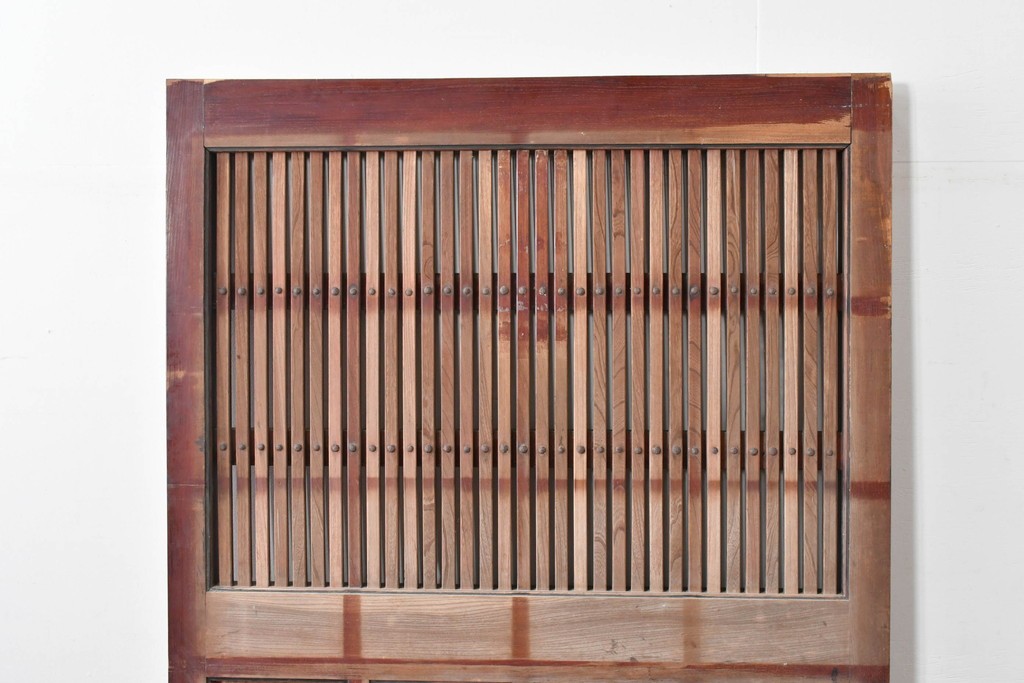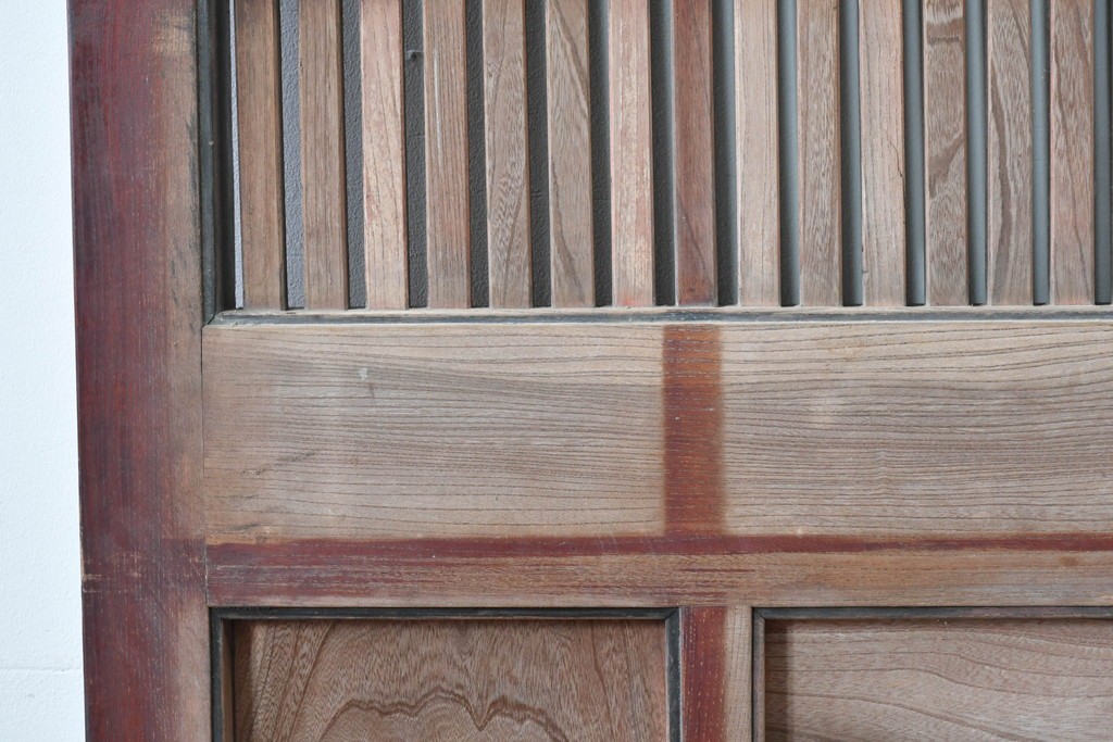 和製アンティーク 上手物 総欅(ケヤキ)材 重厚感ある格子と金具が印象的な北陸格子蔵戸1枚 (R-085044)