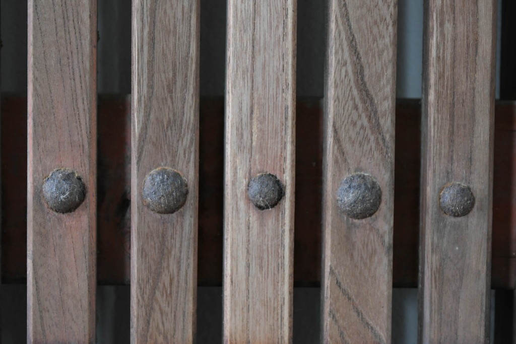 ラフジュ工房> ドア・建具> 格子戸 > 和製アンティーク 上手物 総欅(ケヤキ)材 重厚感ある格子と金具が印象的な北陸格子蔵戸1枚 (R-085044)