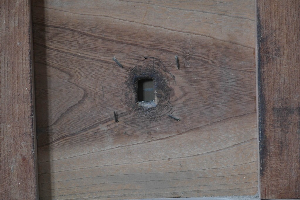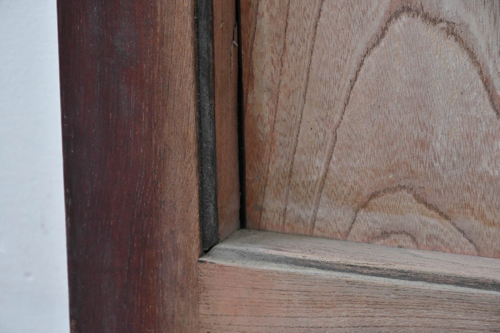 ラフジュ工房> ドア・建具> 玄関ドア・玄関戸 > 和製アンティーク 上手物 総欅(ケヤキ)材 重厚感ある格子と金具が印象的な北陸格子蔵戸1枚 (R-085044)