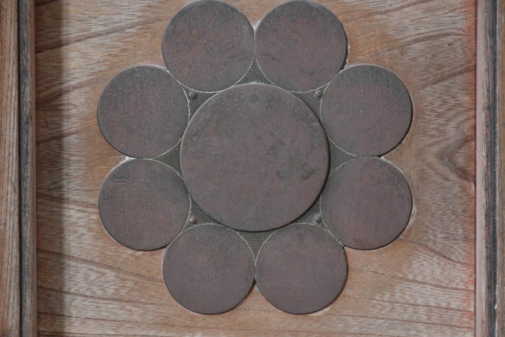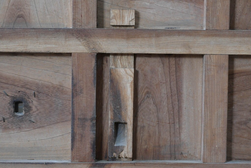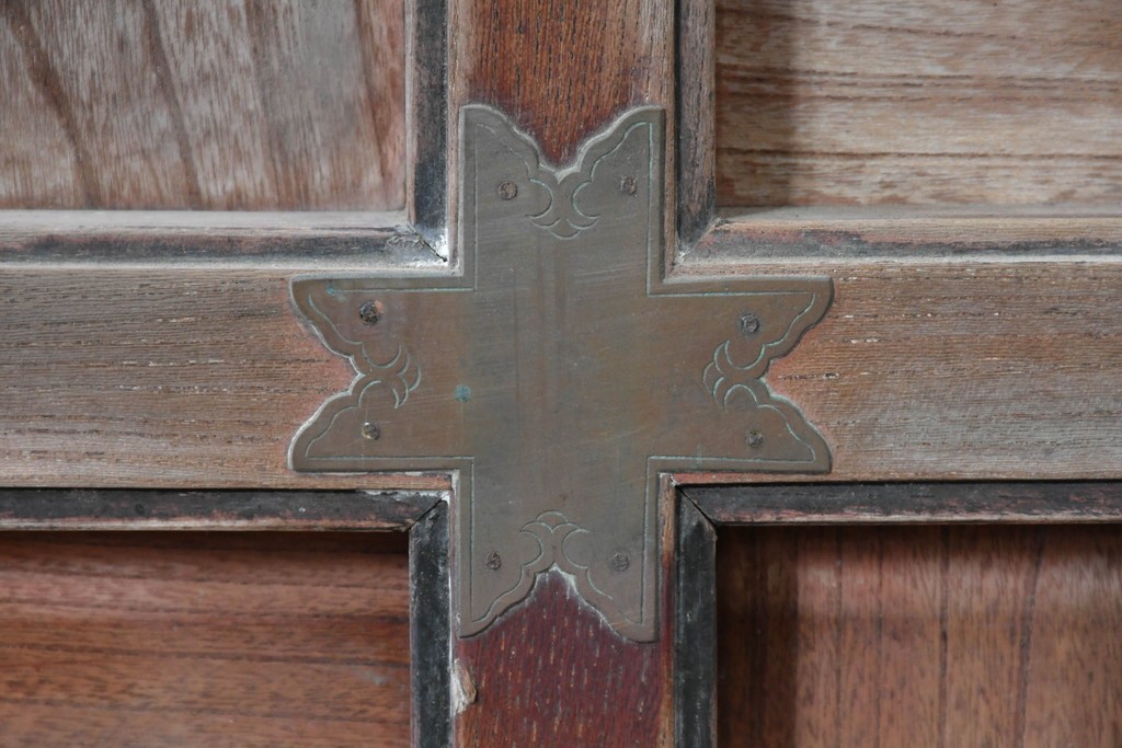 ラフジュ工房> ドア・建具> 蔵戸 > 和製アンティーク 上手物 総欅(ケヤキ)材 重厚感ある格子と金具が印象的な北陸格子蔵戸1枚 (R-085044)
