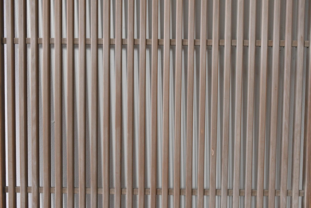 ガラスを用いないつくりのため、縦桟のリズムが際立ち、空間に程よい透け感と陰影をもたらします。