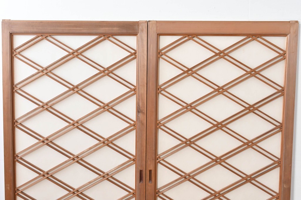 ラフジュ工房> ドア・建具> 障子戸 > ヴィンテージ建具 昭和中期 希少デザイン 菱形の組子が美しい数寄屋の障子戸2枚セット (R-085067)