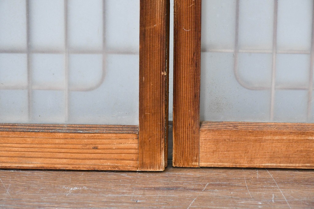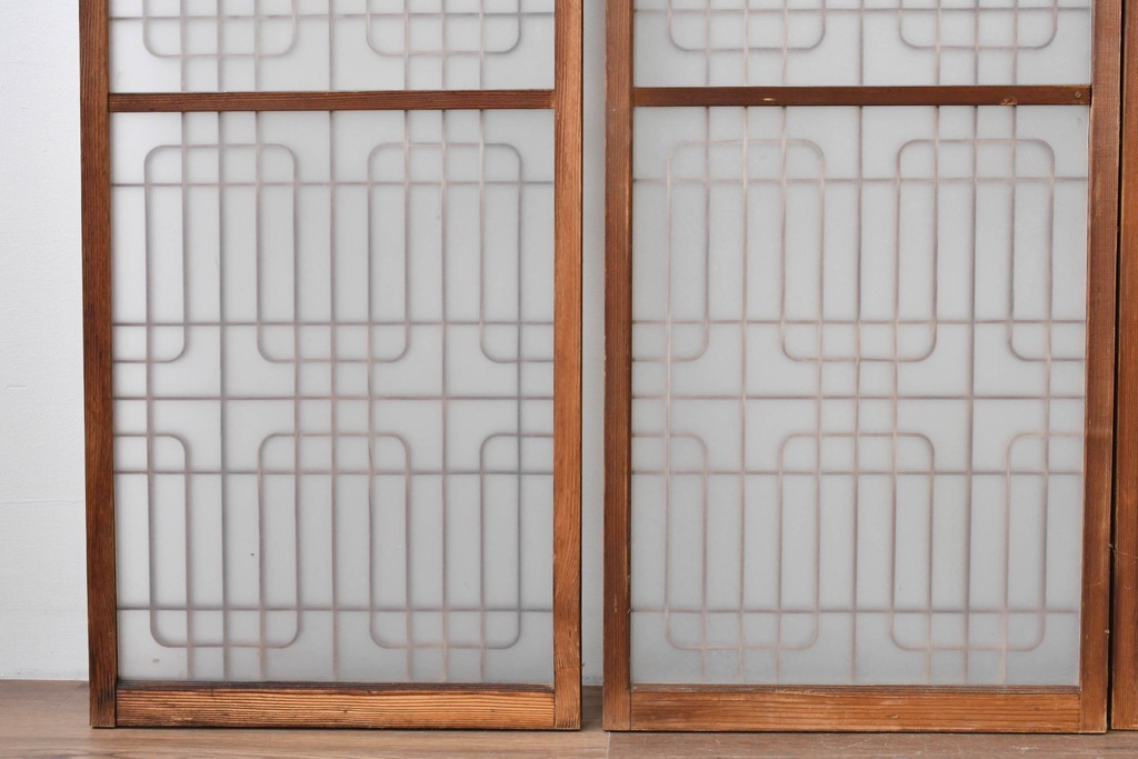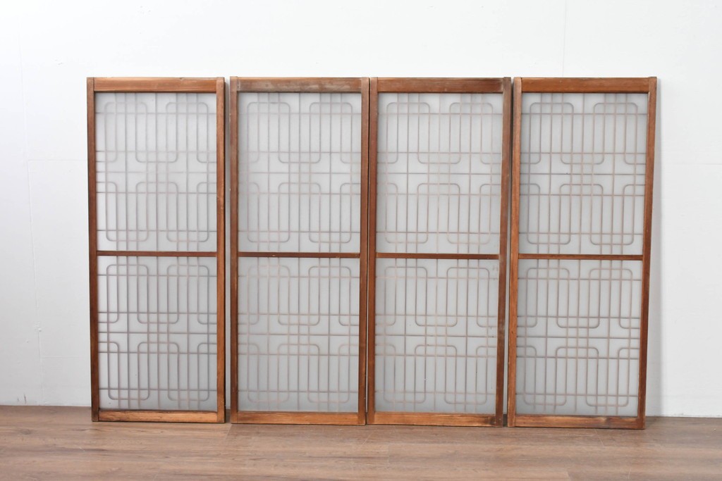 ヴィンテージ建具 昭和後期 片面ガラス入り 端正な組子が趣を添える書院戸4枚セット (R-085070)