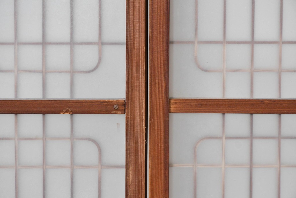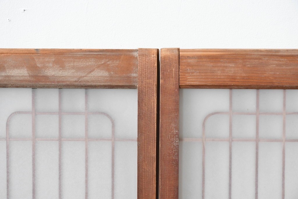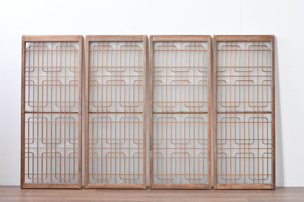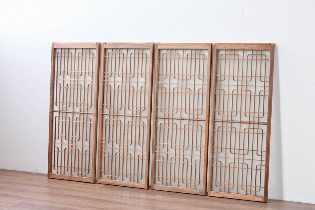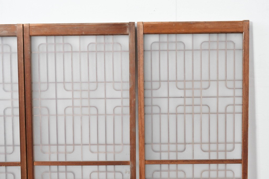 ラフジュ工房> ドア・建具> 引き戸 > ヴィンテージ建具 昭和後期 片面ガラス入り 端正な組子が趣を添える書院戸4枚セット (R-085070)