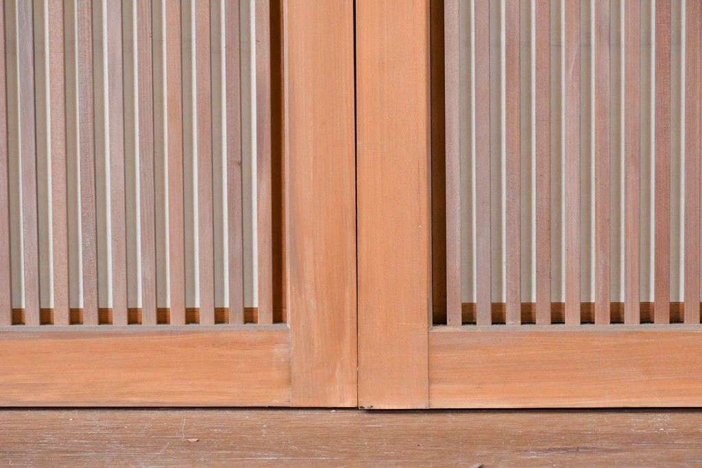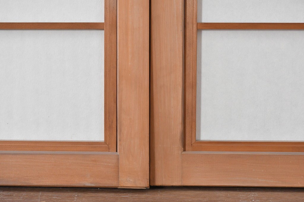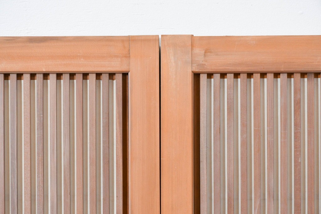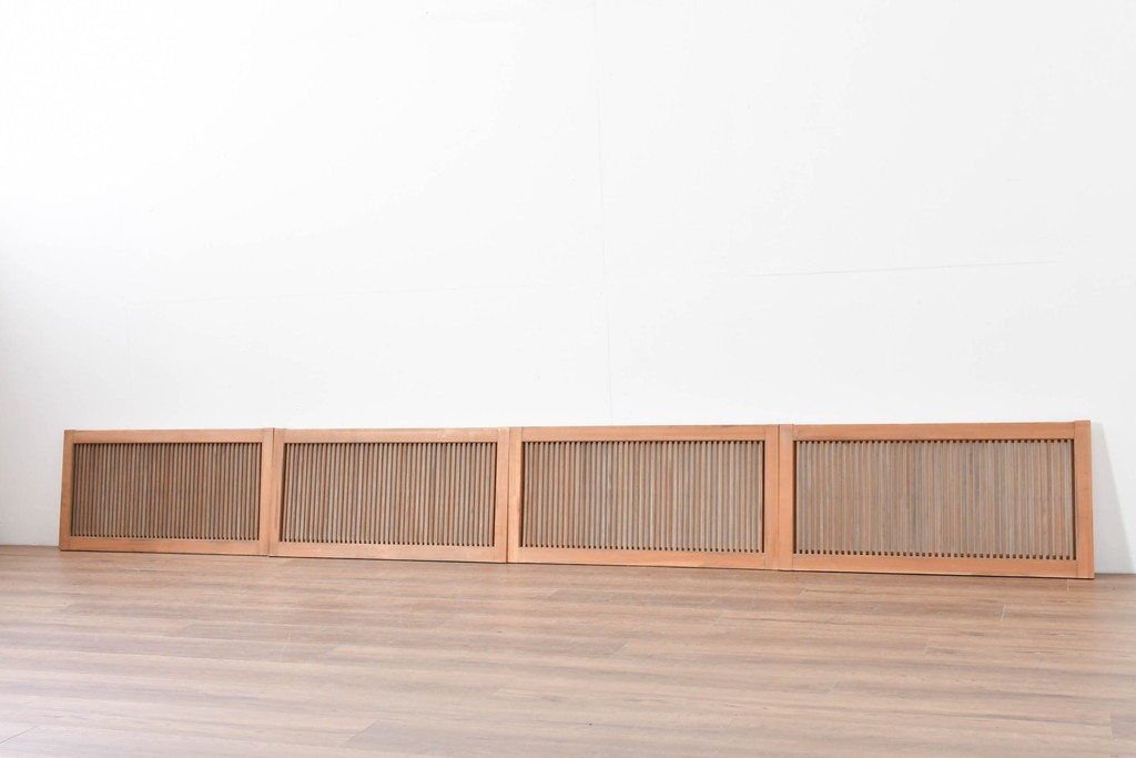 ラフジュ工房> ドア・建具> 引き戸 > ヴィンテージ建具 昭和中期 端正な縦桟が美しく連なる裏障子付き格子窓4枚セット (R-085076)
