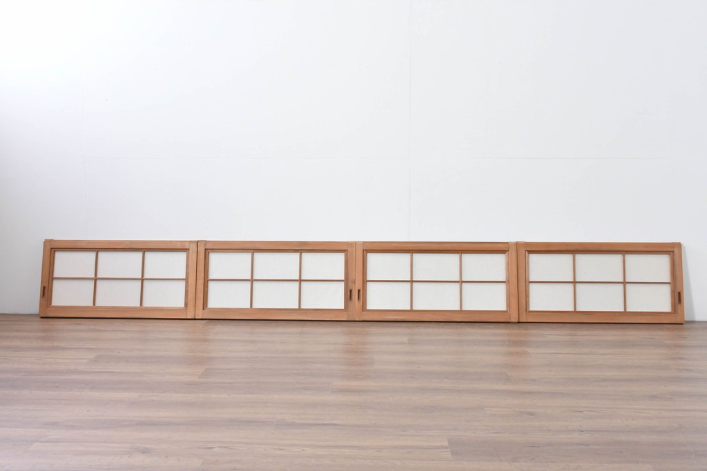 ヴィンテージ建具 昭和中期 端正な縦桟が美しく連なる裏障子付き格子窓4枚セット (R-085076)